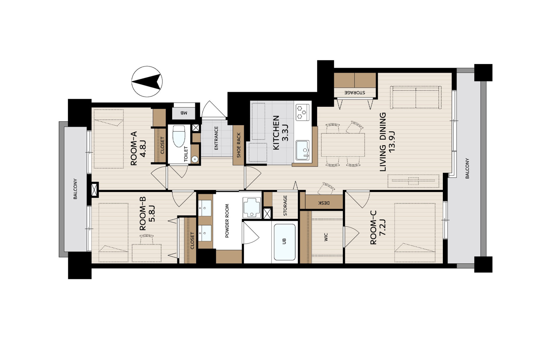 ■南向き、両面バルコニー付き