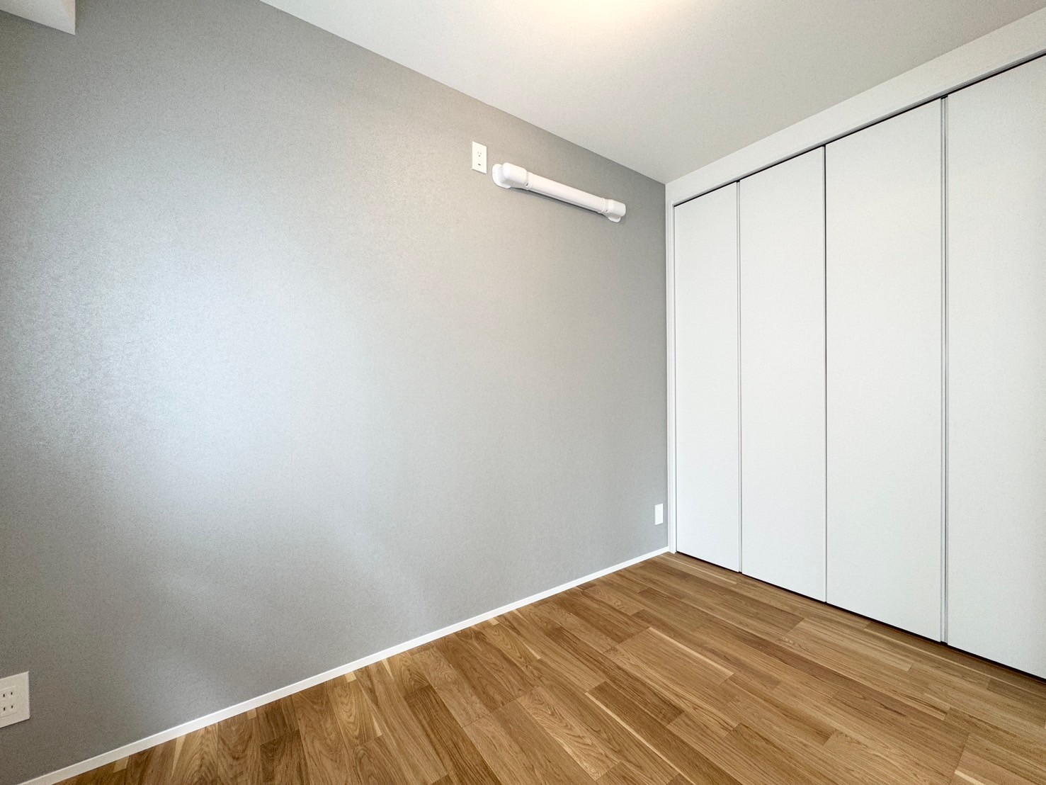 ダブルベットサイズはちゃんと置けるような広さです。スッキリした室内なのでプロジェクターを使って壁に投影したりするのも良いかもしれませんね!