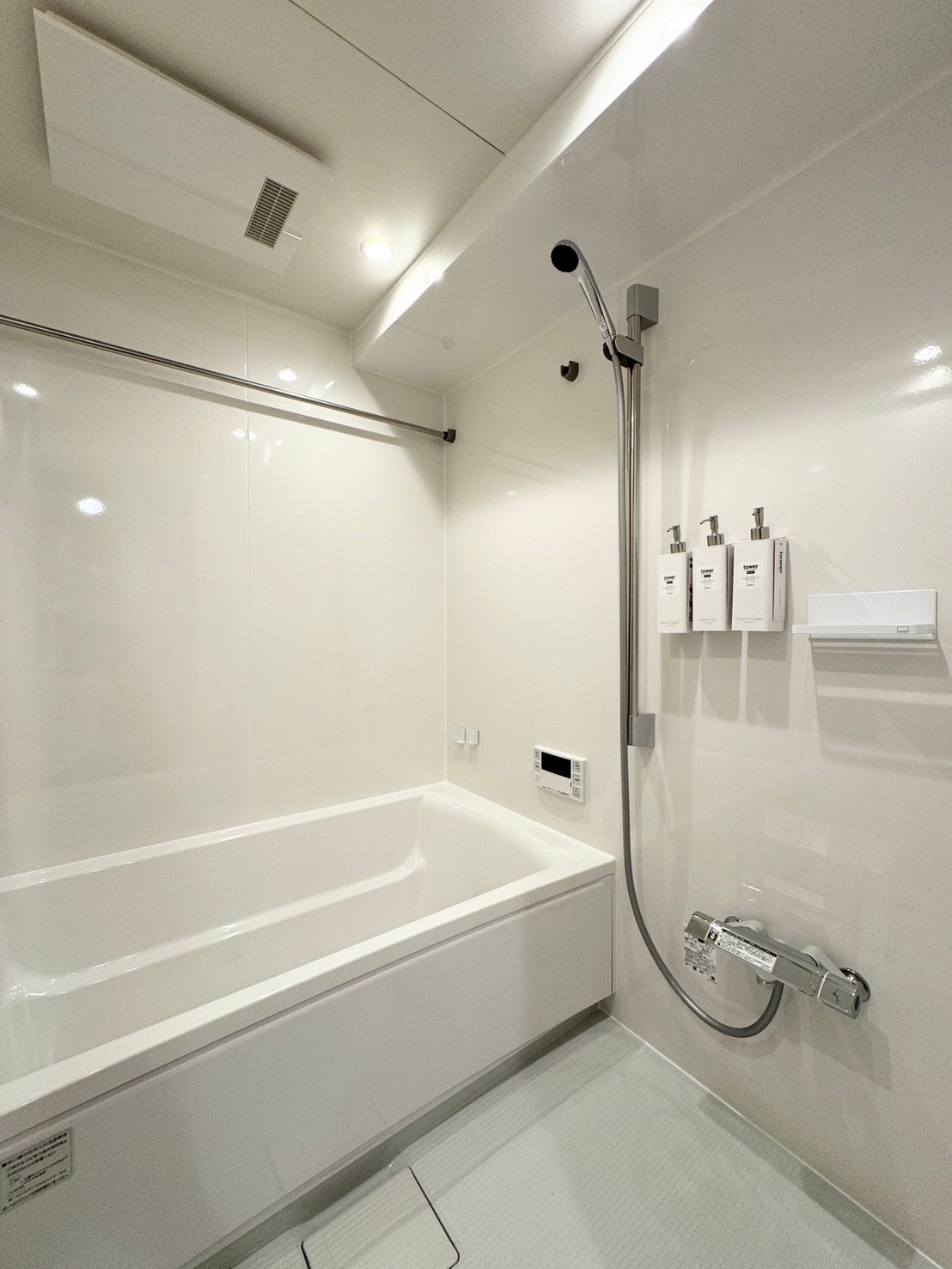 • 浴室はホーローパネルで仕上げているので、シャワー横にあるボトルのように浮かせる収納が可能!傷や汚れにも強いので常に清潔に保てます。お掃除好きにもズボラさんにもおすすめのモデル。