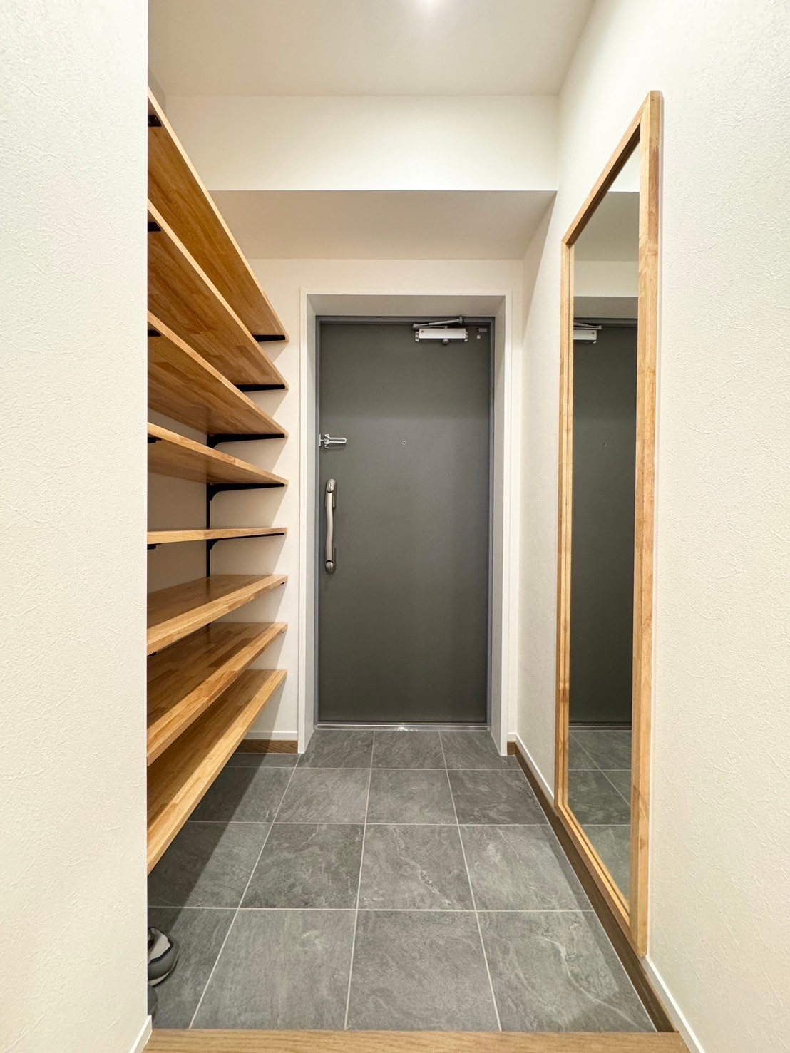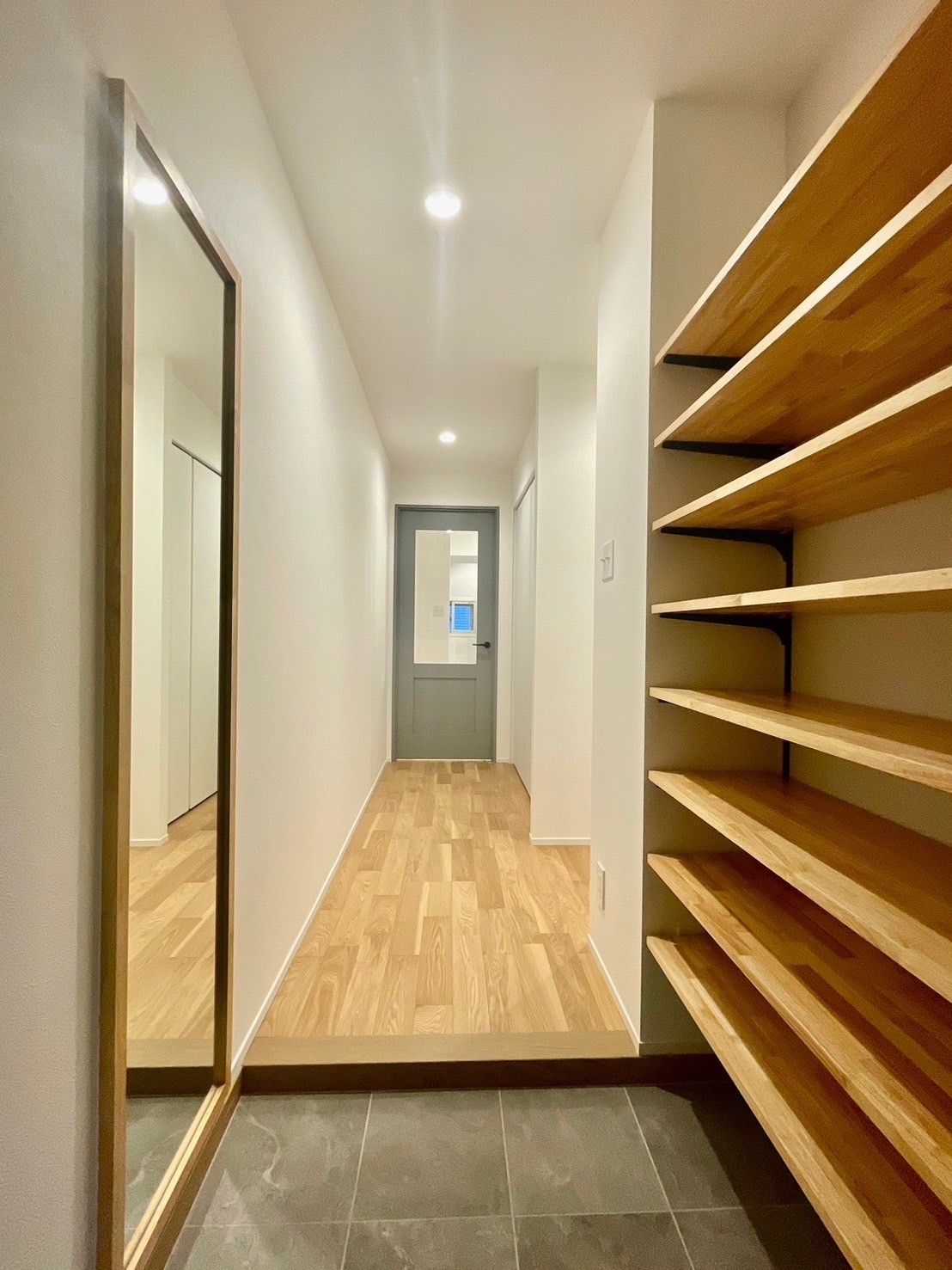 • 玄関土間には大きな鏡を設置していますので、身だしなみチェックを忘れずに!