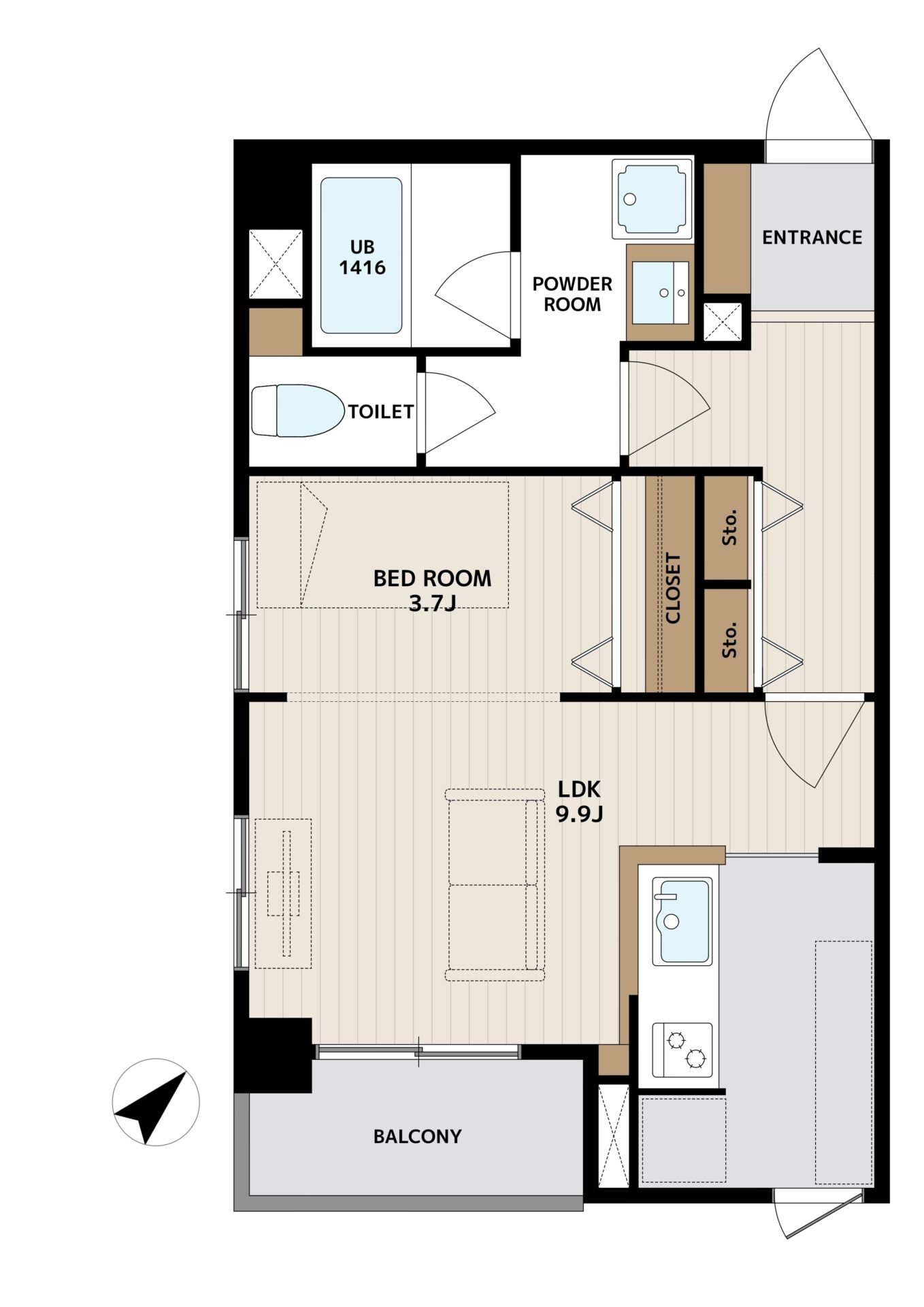 • おひとり様からふたりまでがちょうどいい。そんな間取りにリノベーションしました!天然の木を使ったフローリングでナチュラルな雰囲気に。