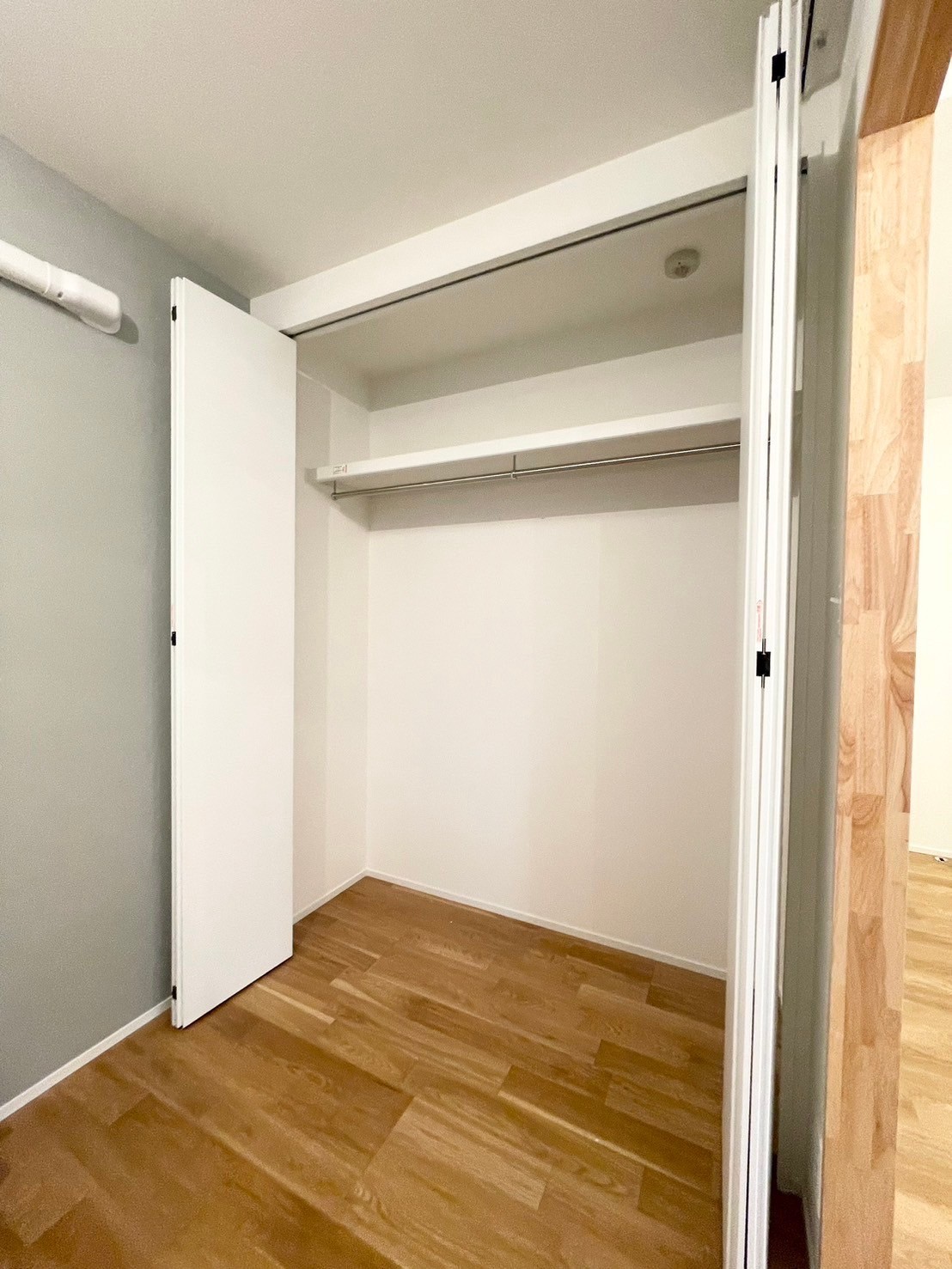 • 扉を天井まで上げているので枕棚もしっかり使えるように仕上げています。