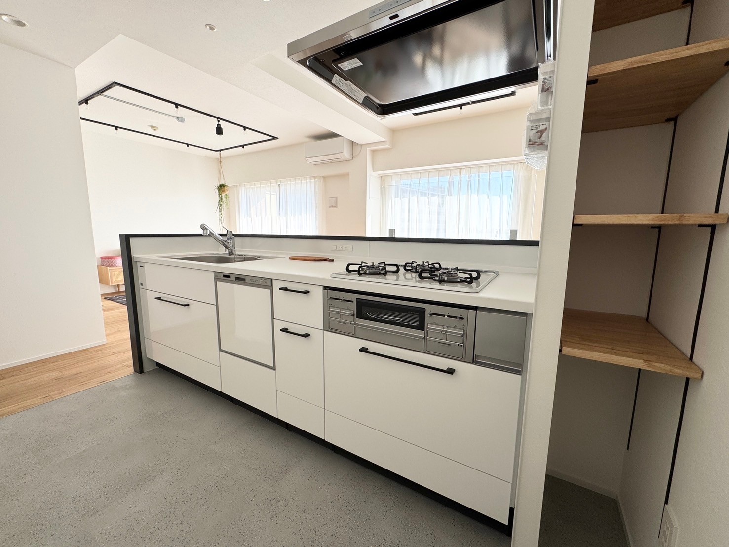 • キッチンと高さ調整できる棚