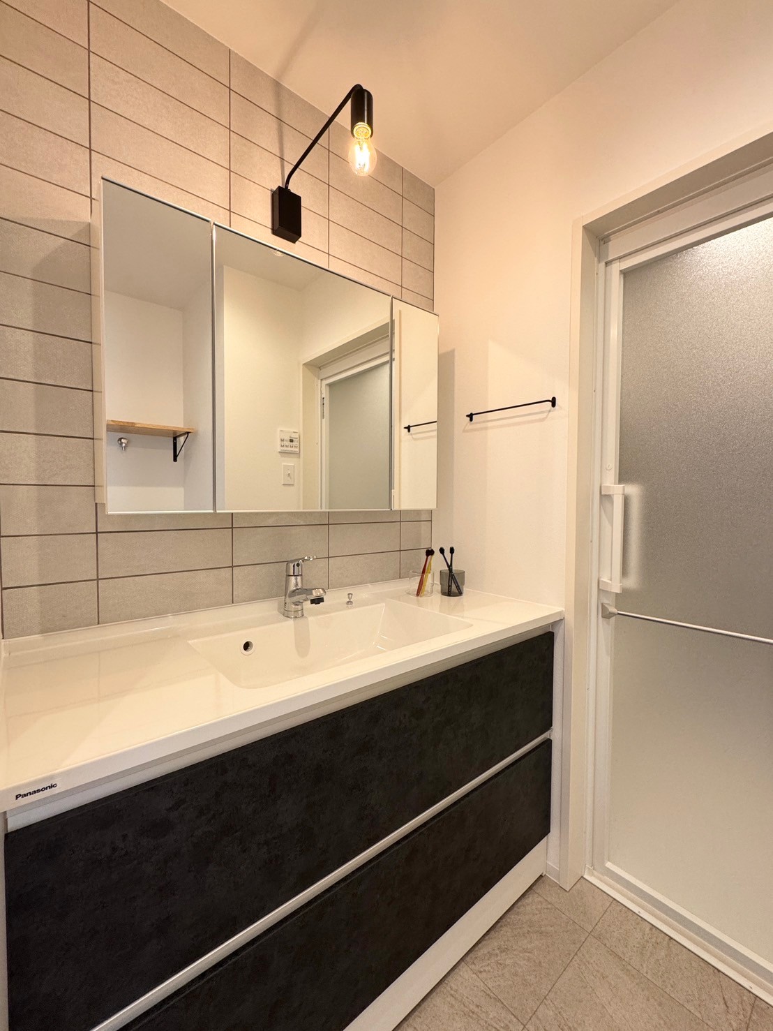 • 壁面をタイルで仕上げた洗面化粧台