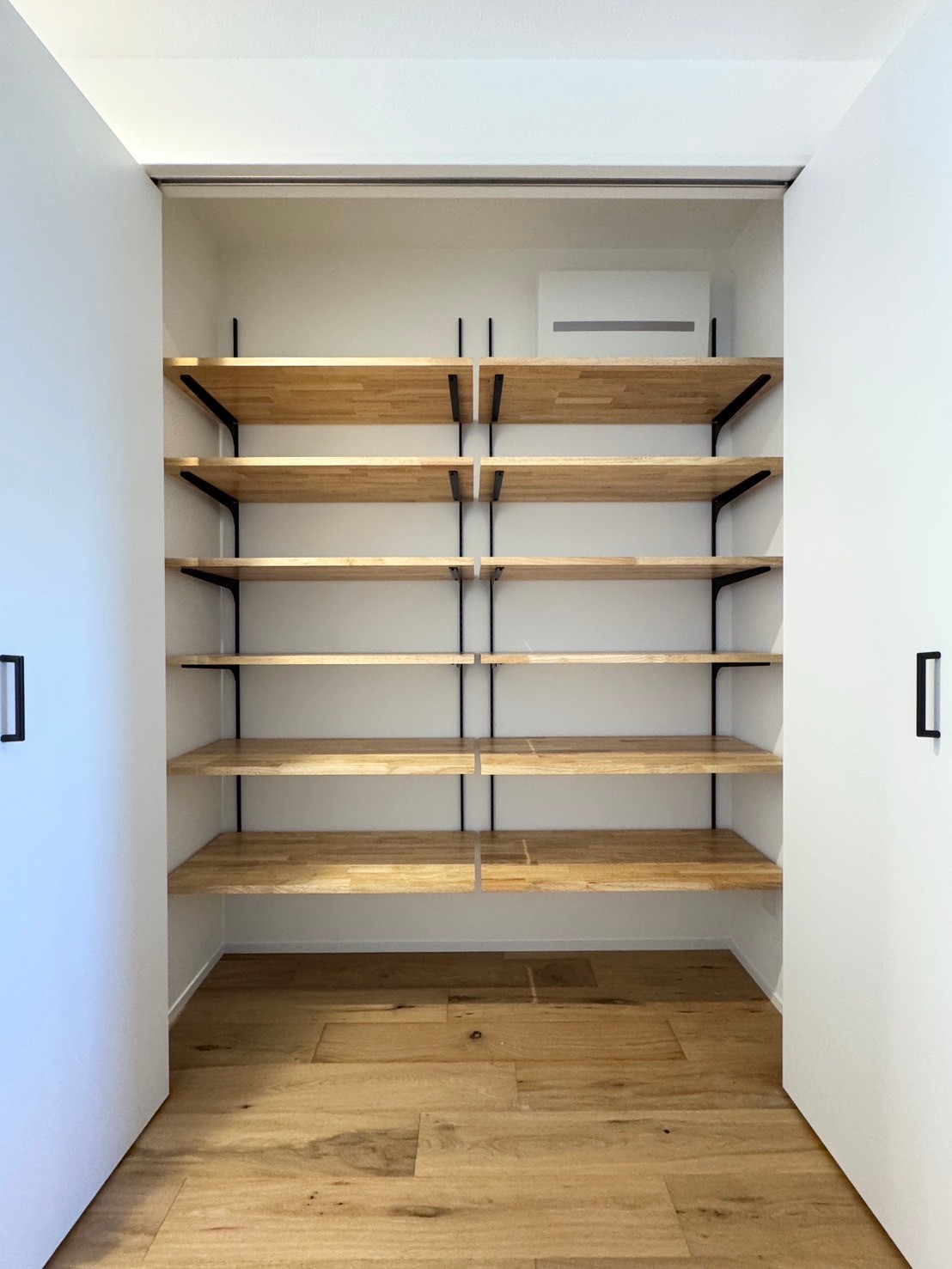 • 廊下にある棚の高さ調整ができる大きな収納