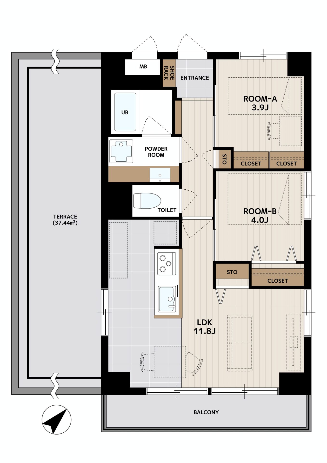 ルーフバルコニー/37.44㎡ 夜間オートロック