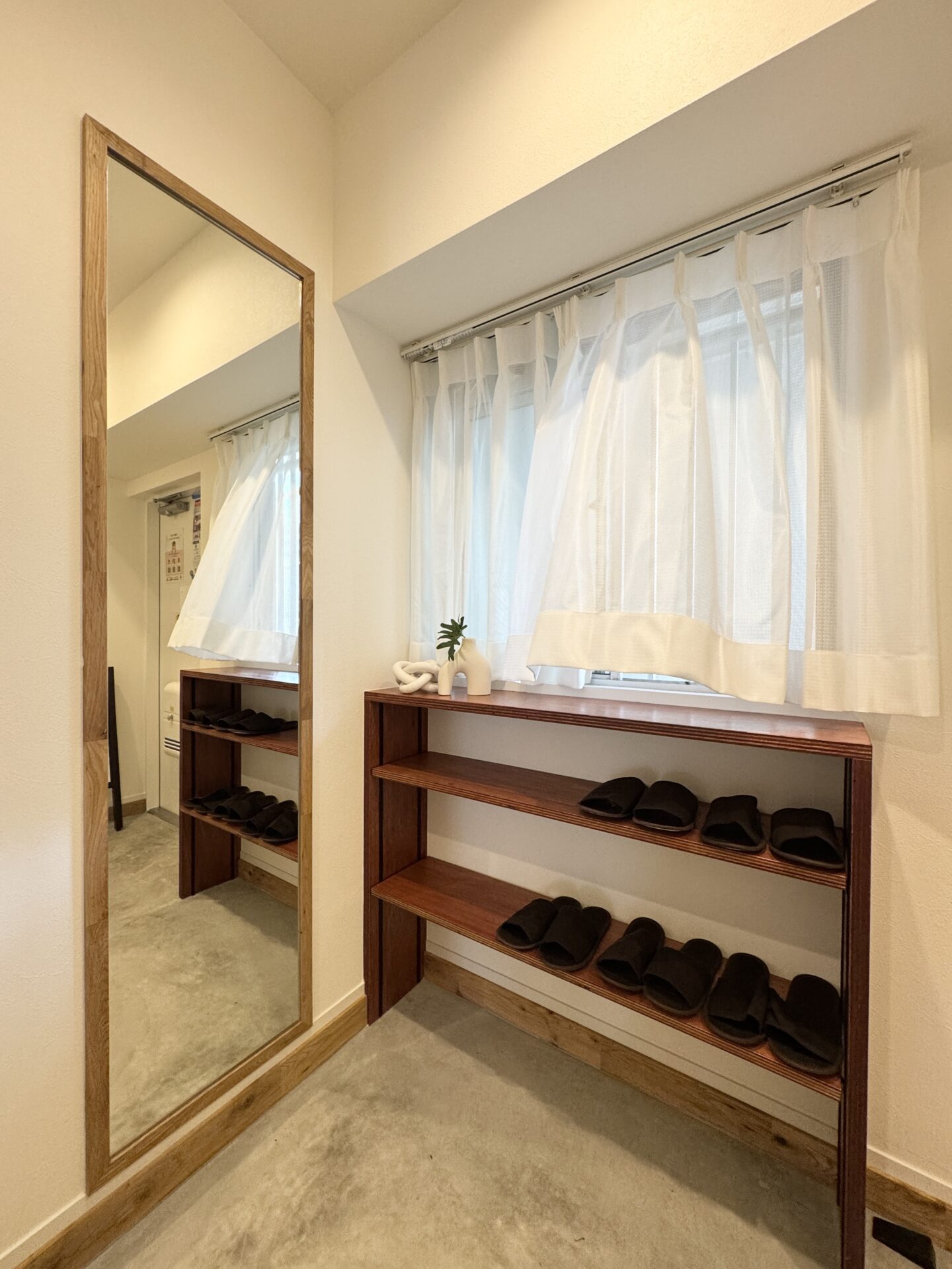 • 玄関土間には大きなミラーと簡単な物置を。