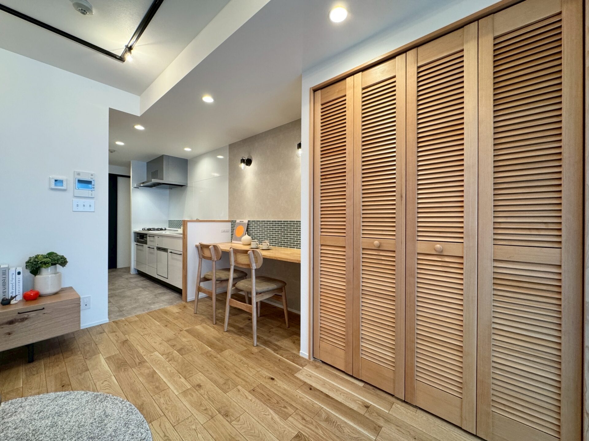 飯田橋駅へのアクセス良好な超好立地物件のリノベ! おひとりからおふたりにちょうどいい間取りに。 オートロックや宅配BOXもしっかり完備◎ リビングには床暖房が設置され、冬場も足元からポカポカ。カウンターデスクで食事も仕事もこなせちゃう。時代にあった間取りをぜひ見に来てください!