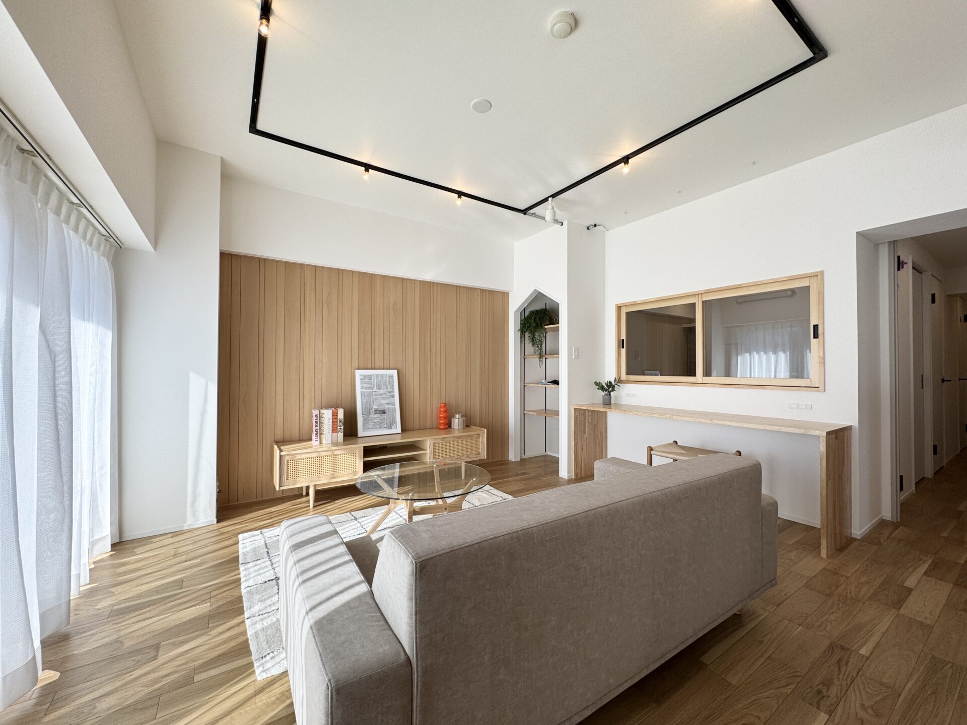 ドアを開けた瞬間、 「この広さ、いいね」と家族の声が自然と出てくる 89㎡超え・角部屋・南向きのフルリノベーション住戸です。 バルコニーに沿って配置されたLDKは、 朝から夕方まで明るく、家族が集まりやすい心地よさ。 突板フローリングのやさしい質感が、 毎日の暮らしを少し豊かにしてくれます。 図面や写真だけでは伝わらない “広さ”と“光”を、ぜひ現地で体感してください。 気になることはLINEからでもお気軽にご相談いただけます。