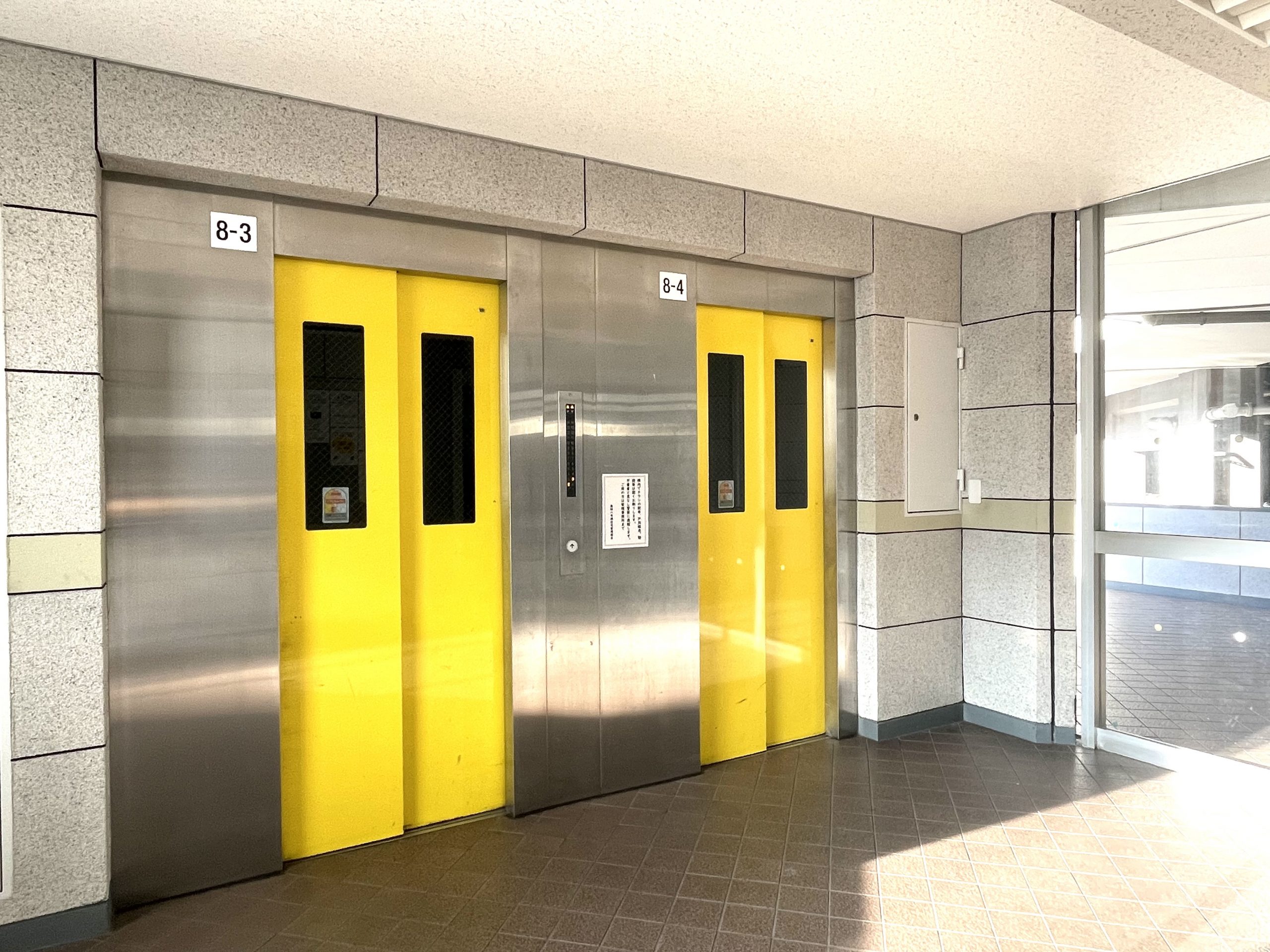• エレベーター両端・真ん中の5基。お部屋の最寄エレベーターは真ん中のイエロー2基です!