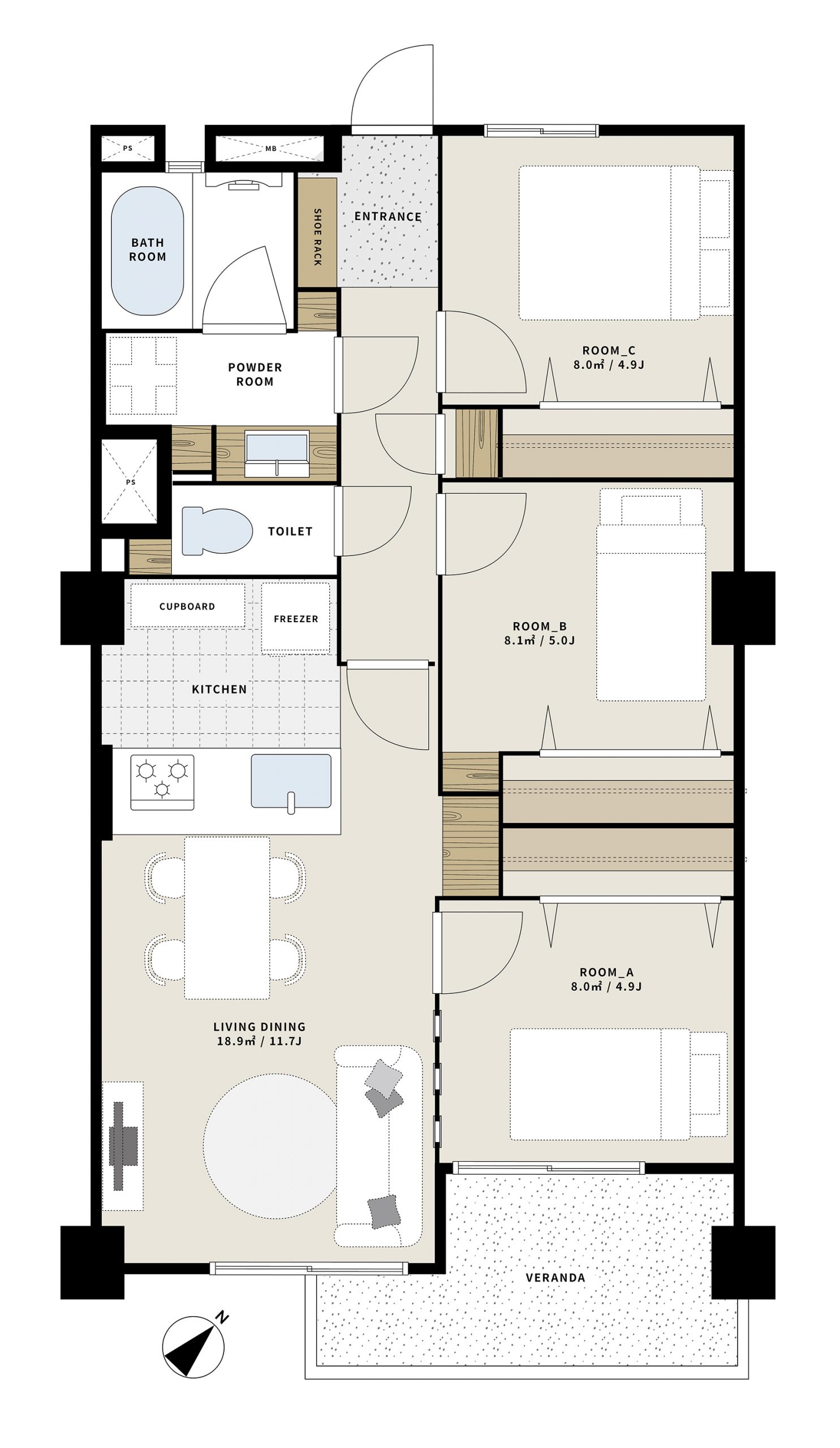 • バルコニーがコンパクトのため干せる量に制限がありそうです。。。ユニットバスには浴室乾燥を付けていますので、使い分けていただくと良さそうです!