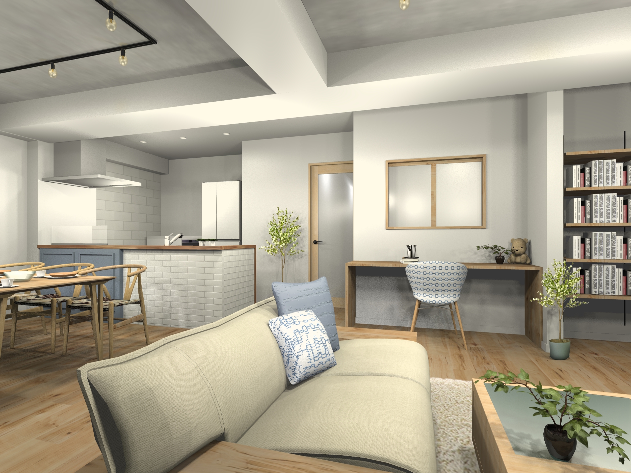 無垢フローリングやアクセントタイルを使用したリノベーション。