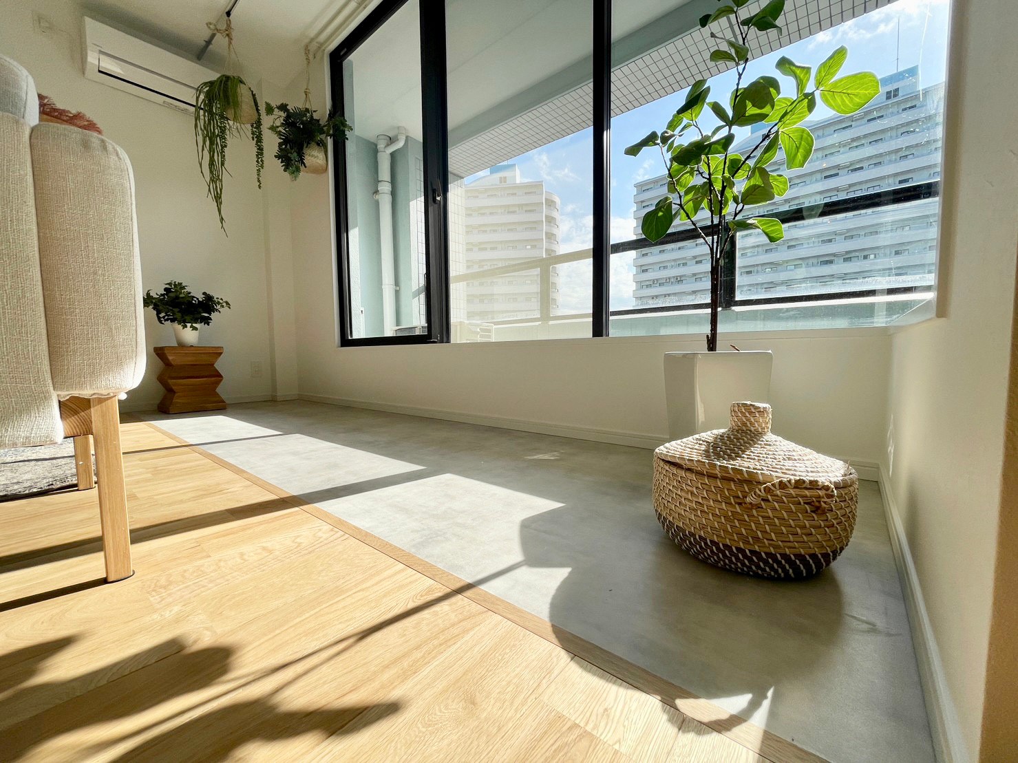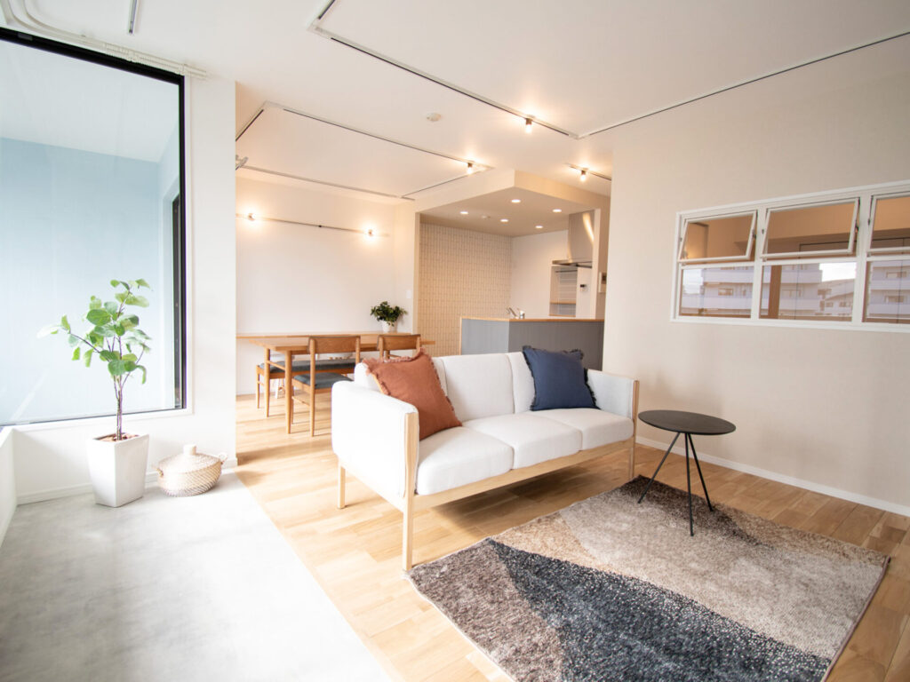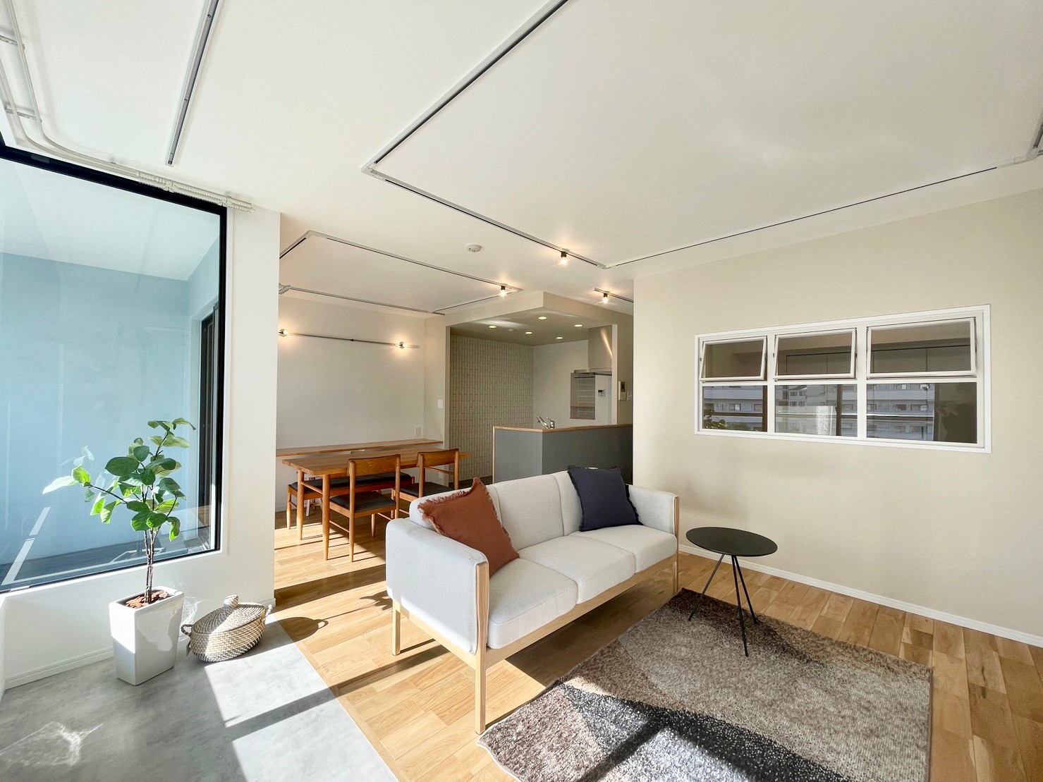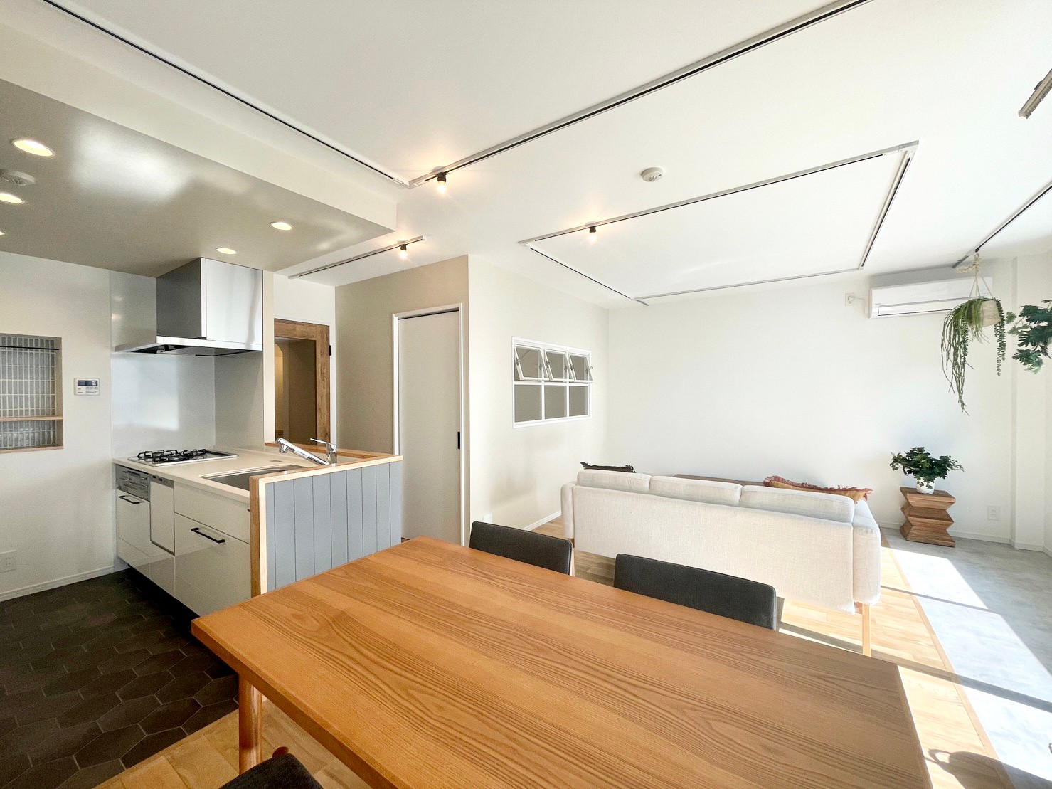南側からの明るい陽射しをたっぷり浴びるLDKがある物件が完成しました! 収納力も豊富な間取で、お子様のいるファミリーにも、ゆとりを持って生活していただける内装に生まれ変わりました! インナーテラスをLDKに設けることで、遊び心をアクセント。 観葉植物を育てたり、置き型ハンモックを置いて読書やお昼寝なんかも良いですね!