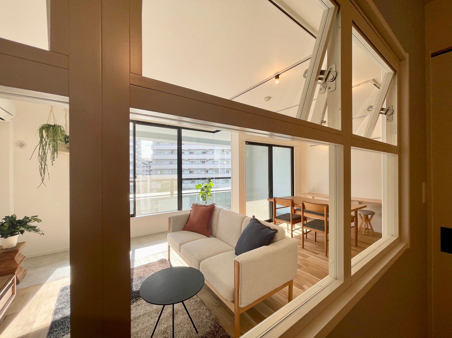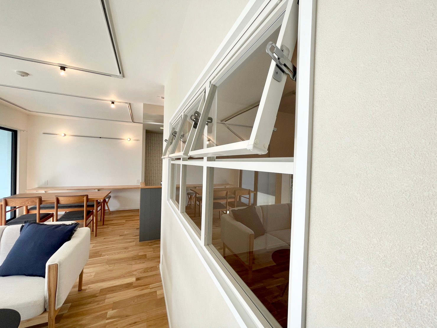 • リビング横の洋室との間には室内窓を設置!デザイン性はもちろん、上部は開閉式になっているのでこもりがちな洋室にも風を通すことができます!