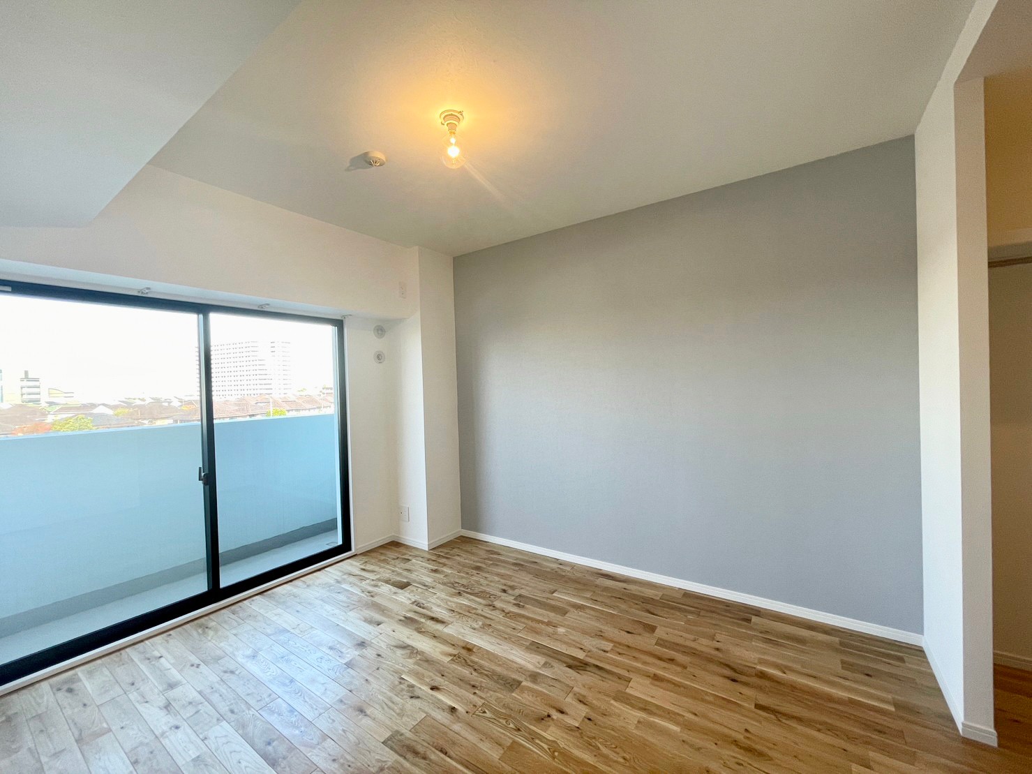 • こちらは北側の洋室になりますが、明るいお部屋に仕上がりました。アクセントクロスもニュアンスカラーで、お部屋の雰囲気もグンとアップしています。