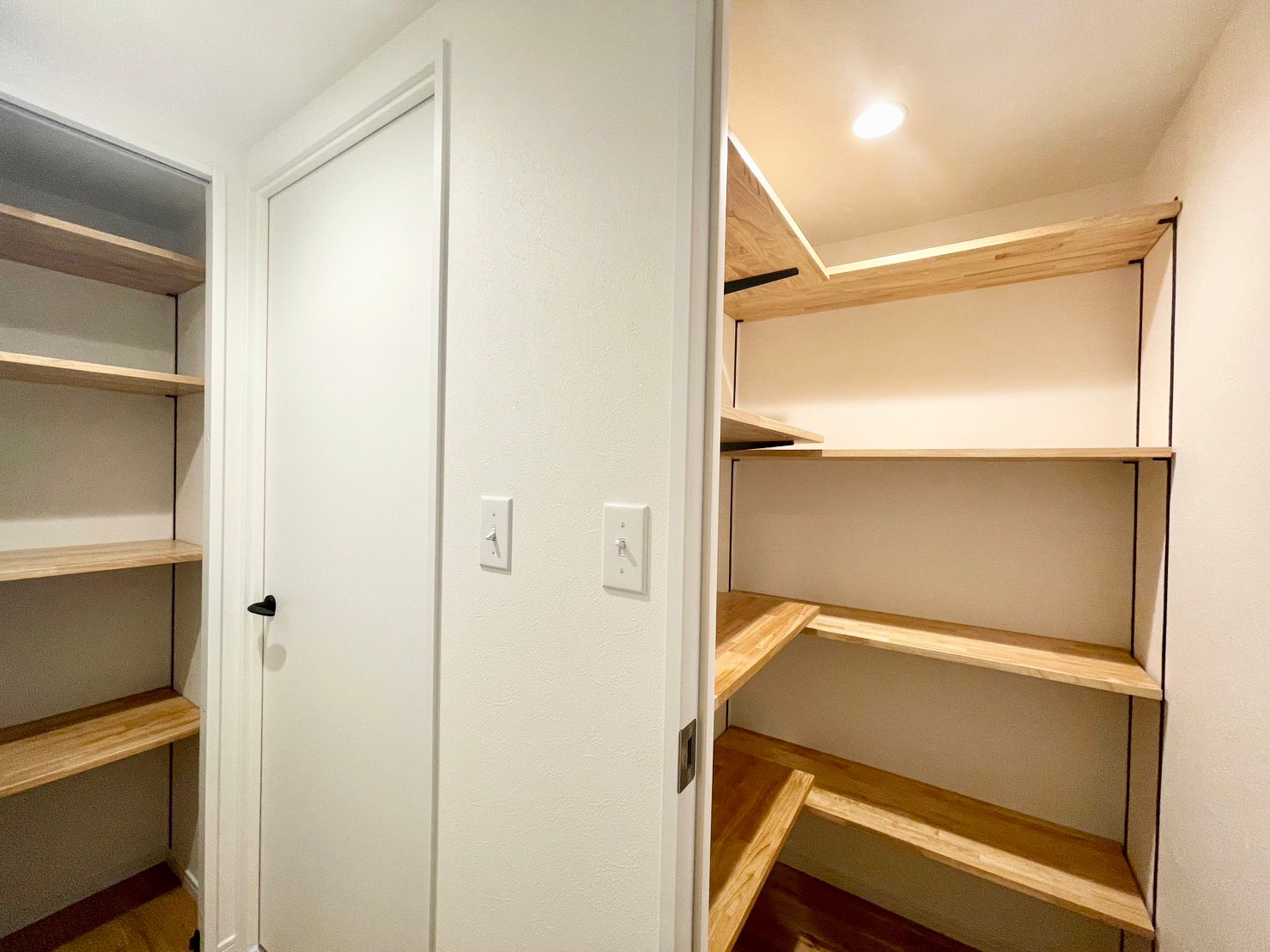• 収納には可動式の棚を設置。住む人に合わせて高さを調整できるようにデザインしています。