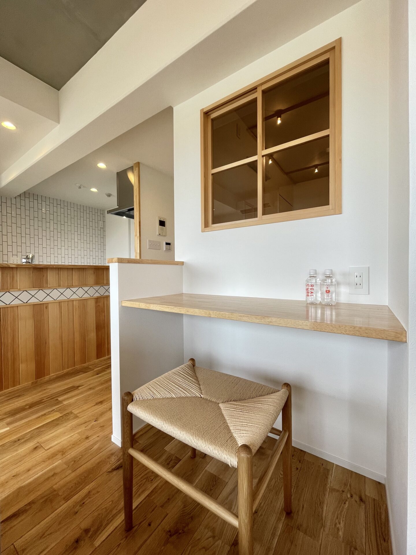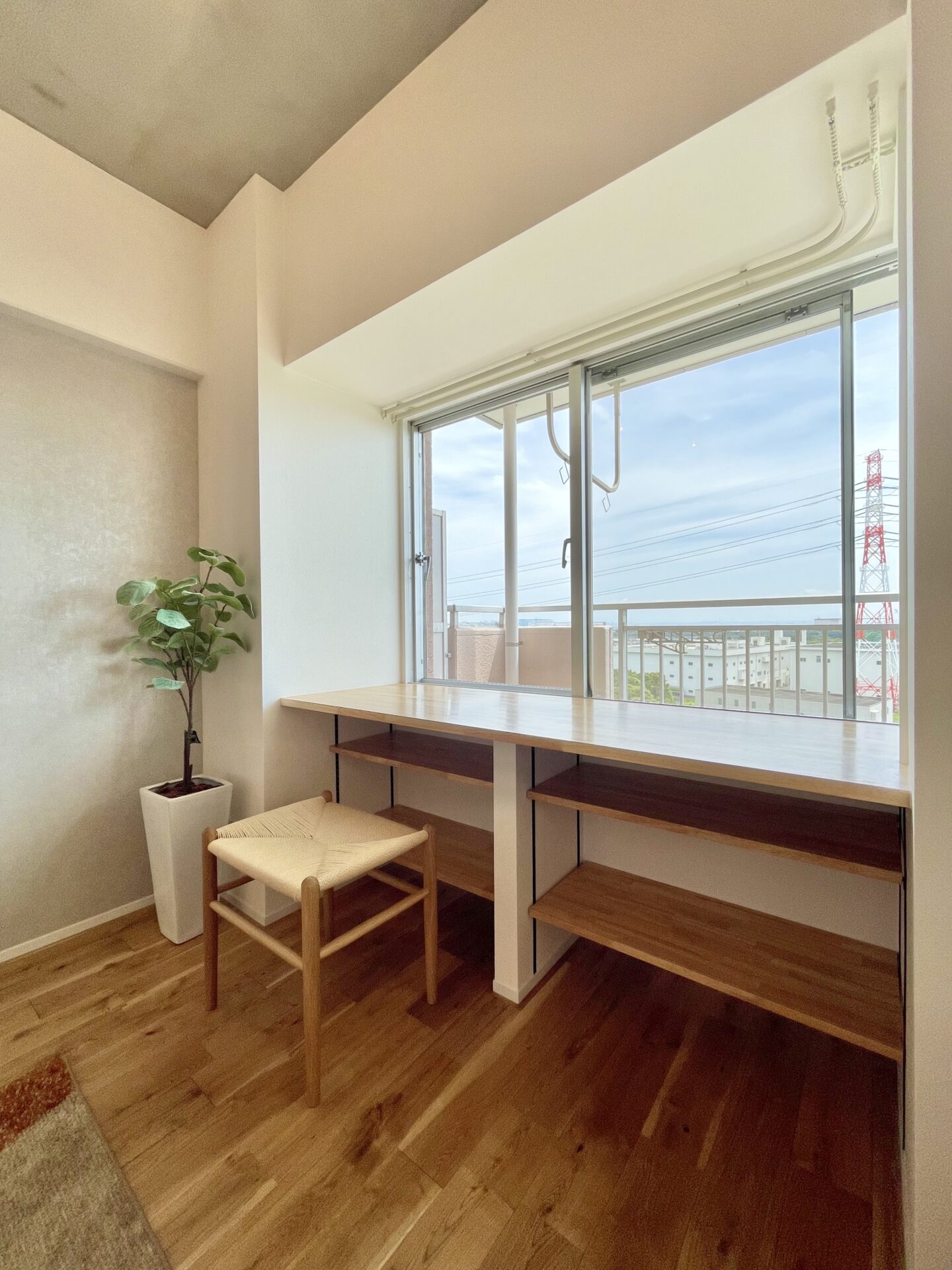 • 出窓部分は収納兼カウンターデスクにしています。在宅ワークや趣味の時間等、、、気分転換にいかがでしょうか(^^♪
