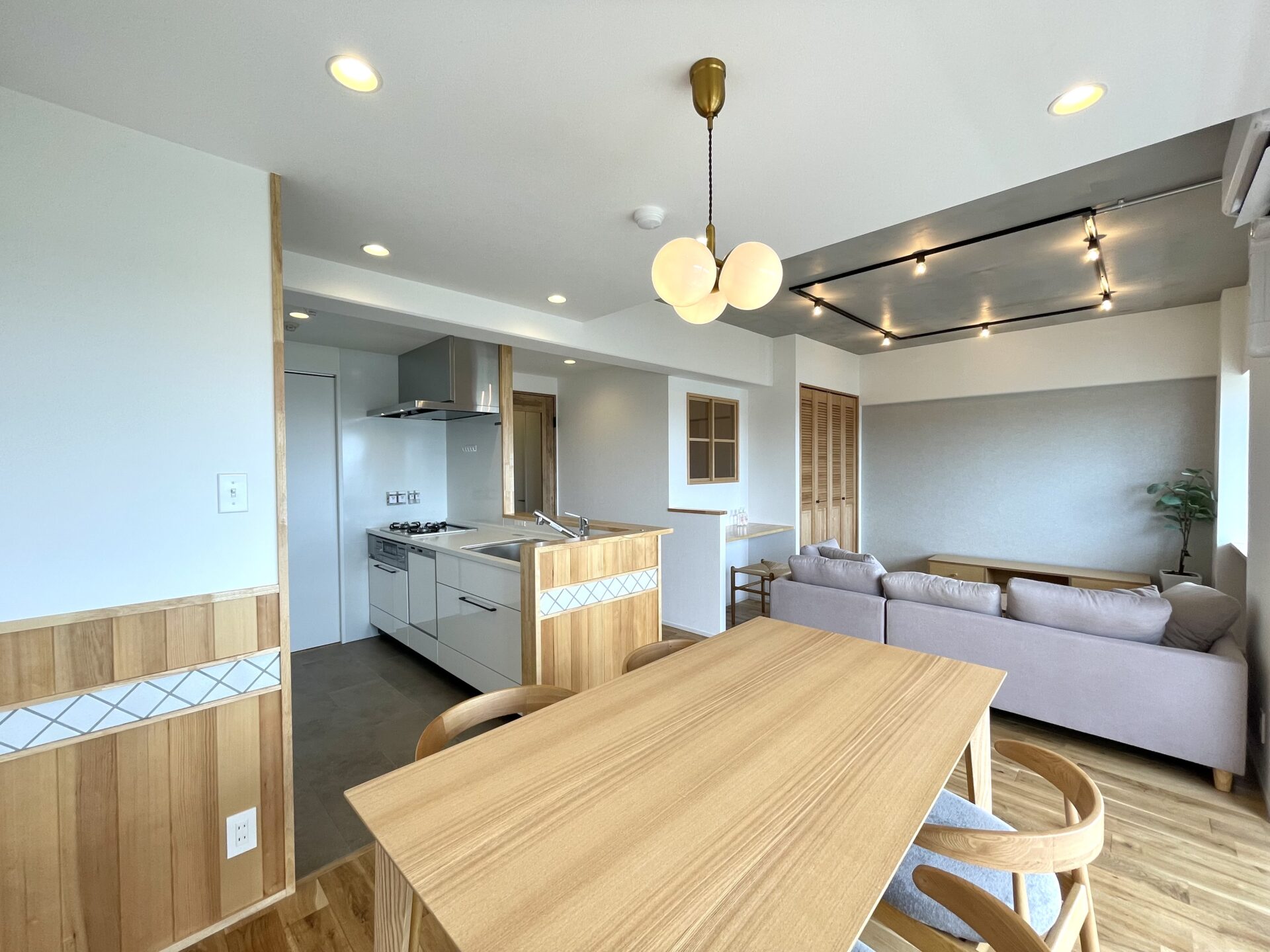 • ナラの無垢フローリングを使用したフルリノベーション物件が完成しました☆天井はモルタル左官でアクセントをつけています。