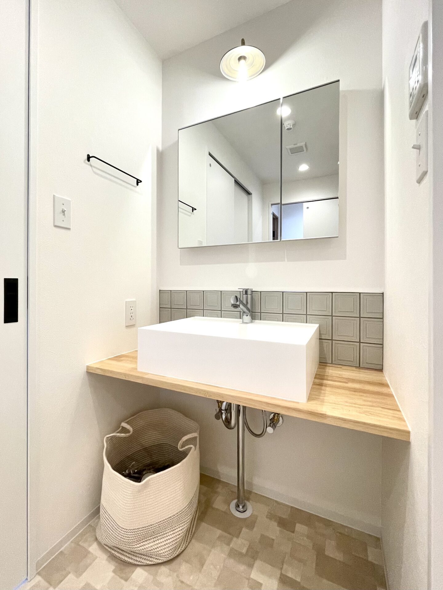 • 洗面ボウル・カウンター・ミラーボックスなど、全てひとつひとつ使いやすさを考えてつくりました!見た目もjかわいく、使い勝手の良い洗面です☆