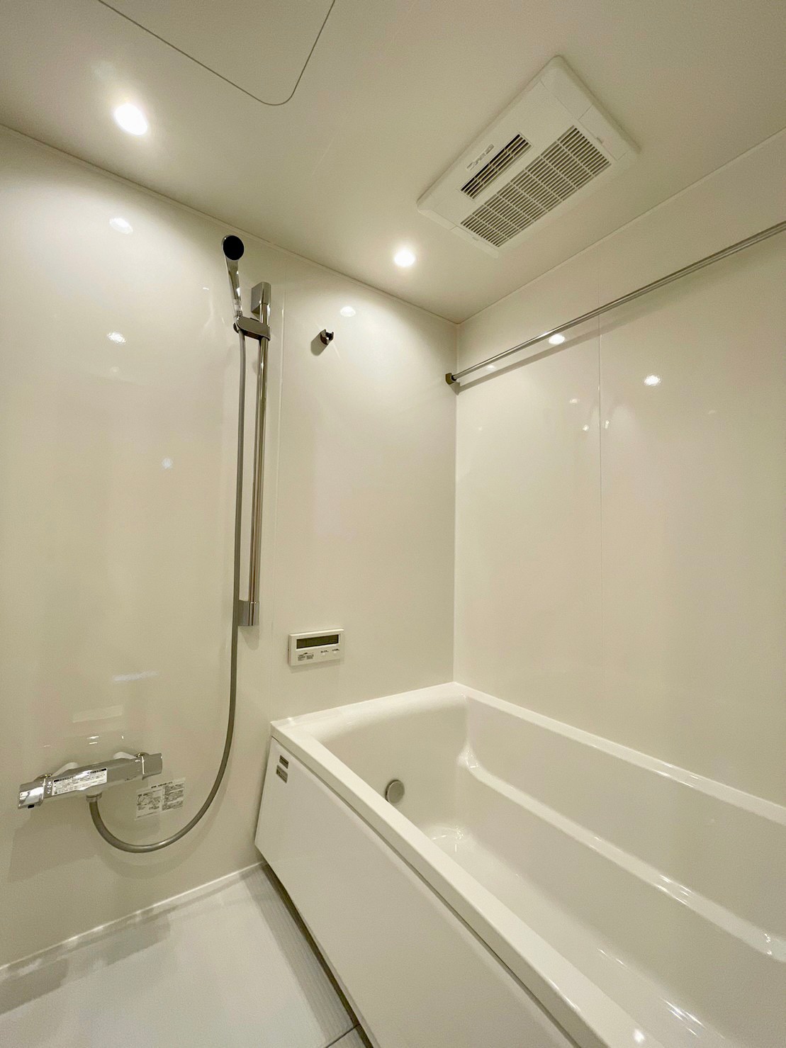 • タカラスタンダード社製のユニットバスを設置。サイドパネルは全てホーローになっており、傷・汚れに強い建材となっています。また、マグネットも利用できるので、お風呂用品を浮かせて利用可能。お掃除しやすいよう、無駄なものを省いたデザインに仕上げています。浴室換気乾燥機付きなので、雨や花粉の季節に最適です。