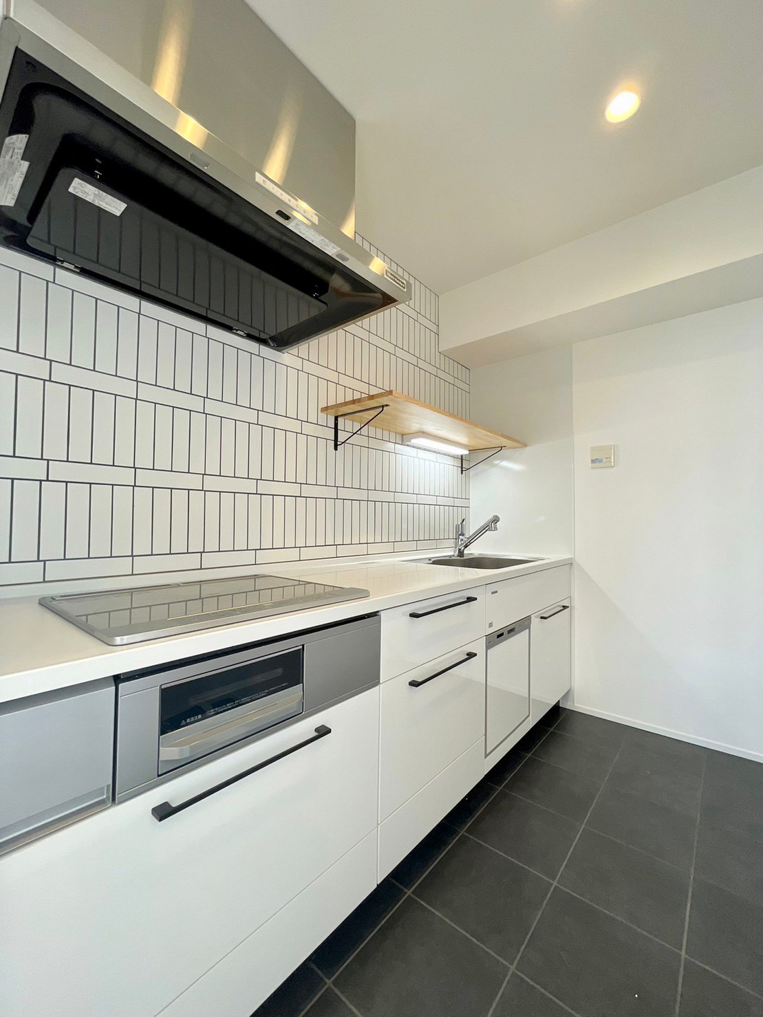 • キッチンはタカラスタンダード社製。両サイドのキッチンパネルはホーローを採用し、マグネットも使用できるようになっています。コンロはIHクッキングヒーター。タイルで雰囲気UP!