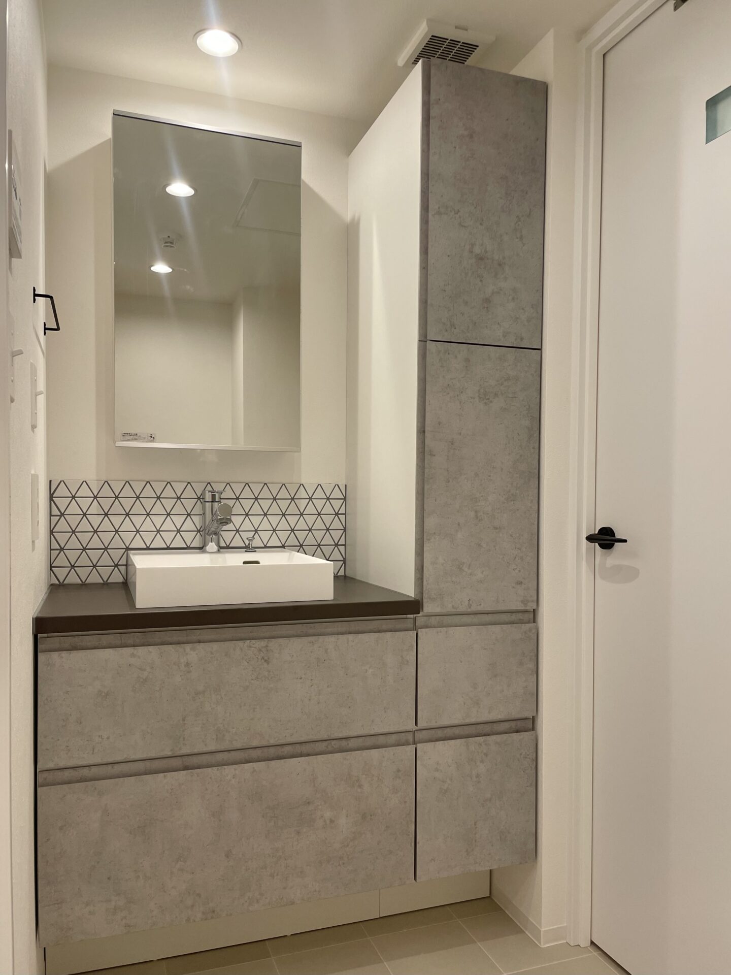 • アイカ製のキャビネットが入った洗面室です。