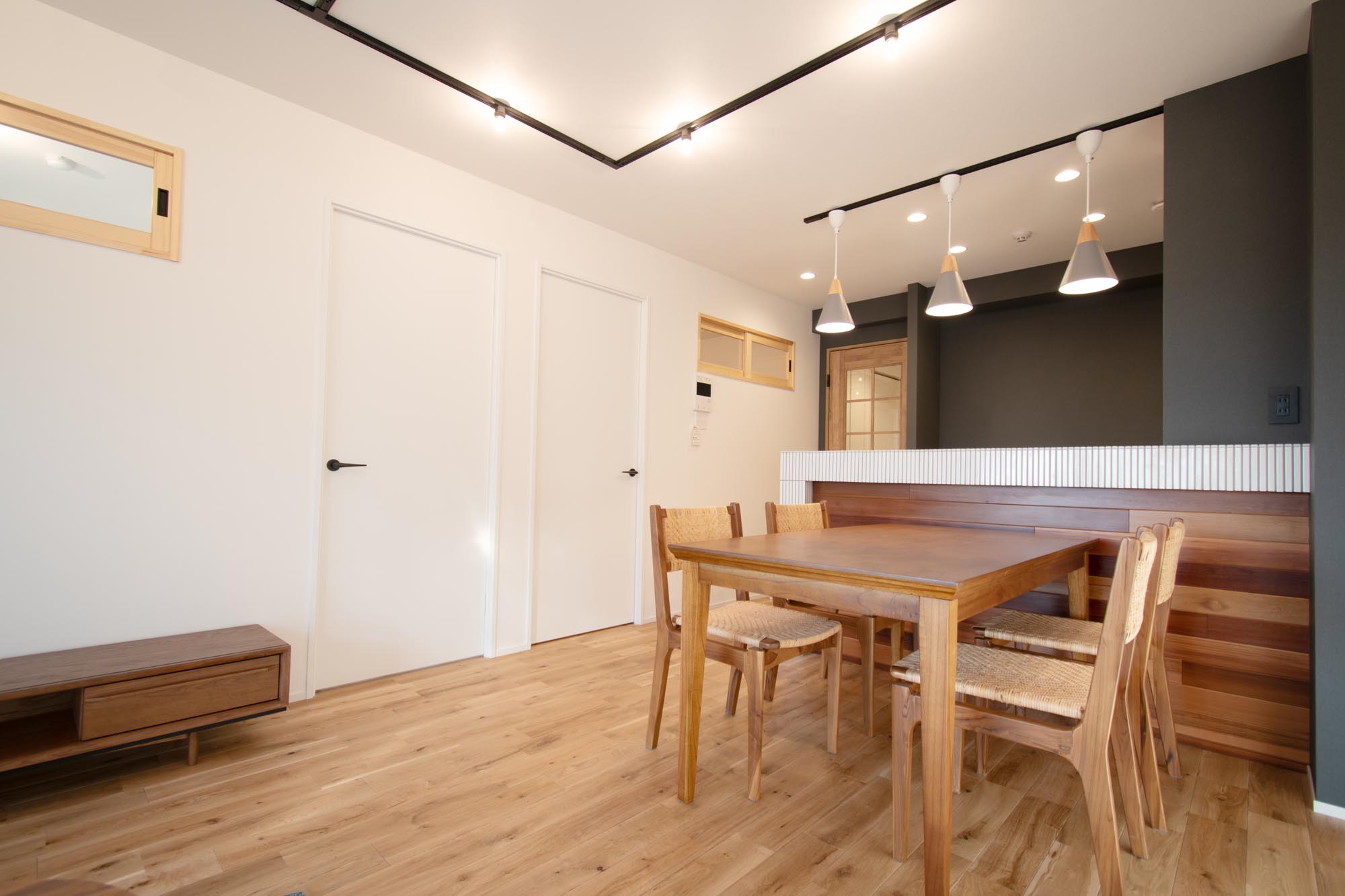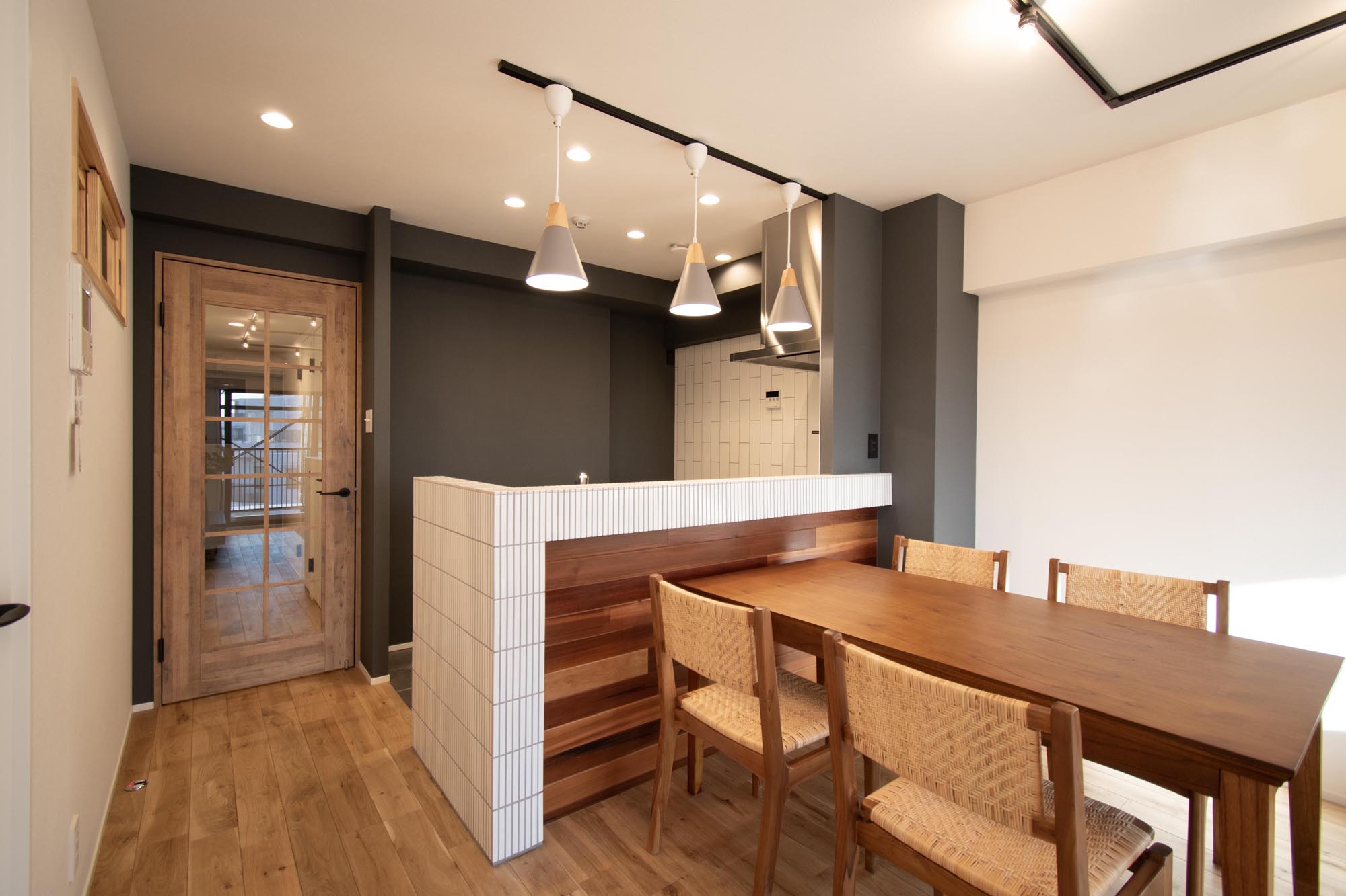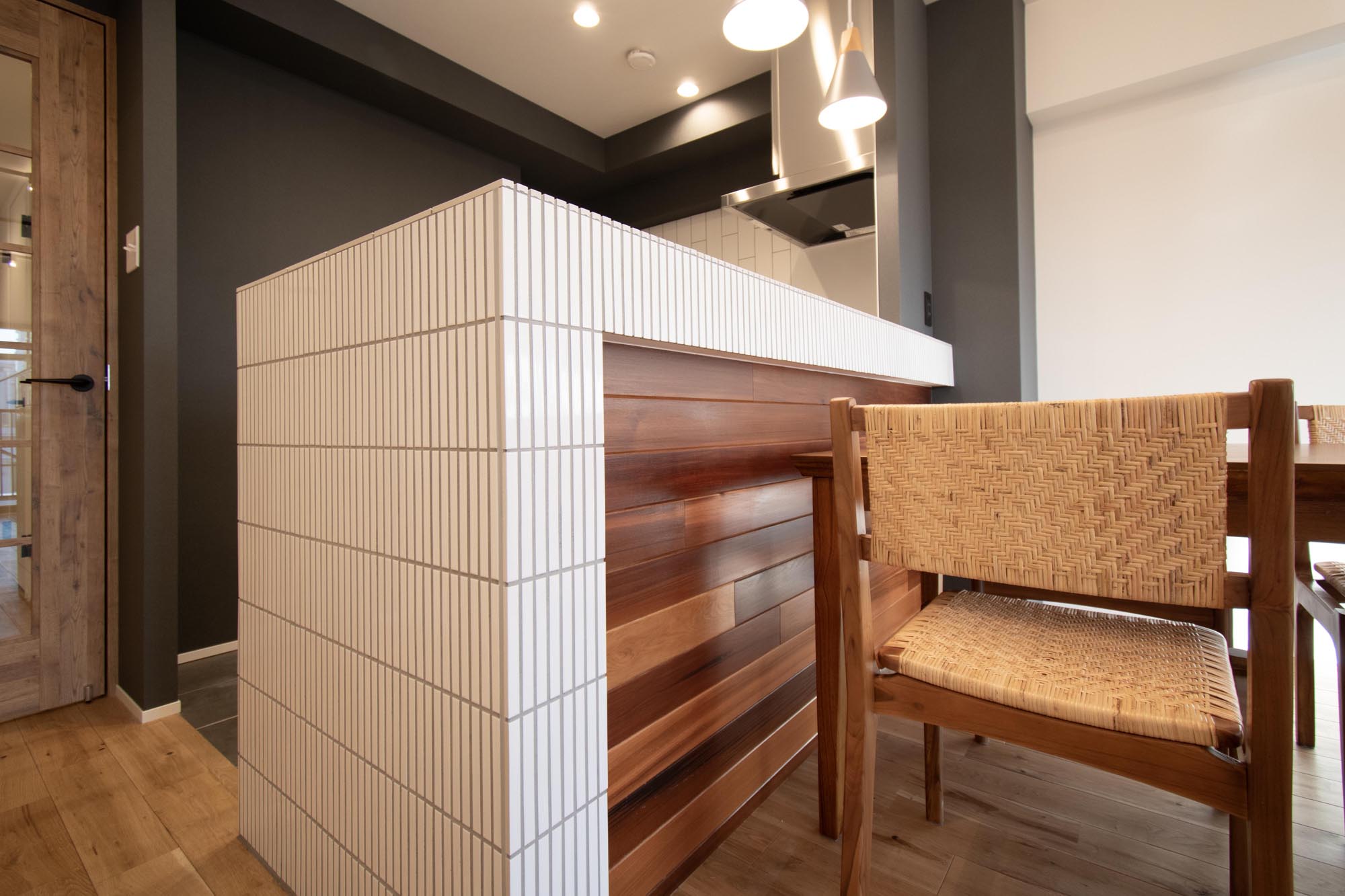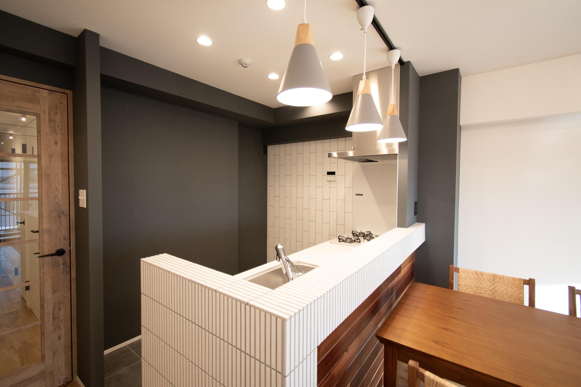 トーンを合わせたキッチンの腰壁で雰囲気UP。