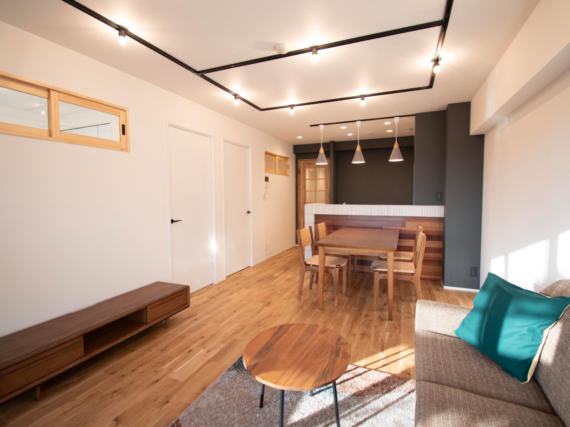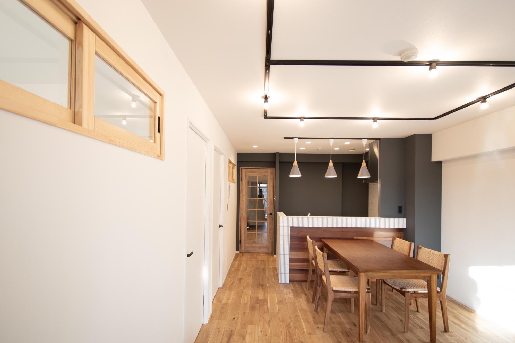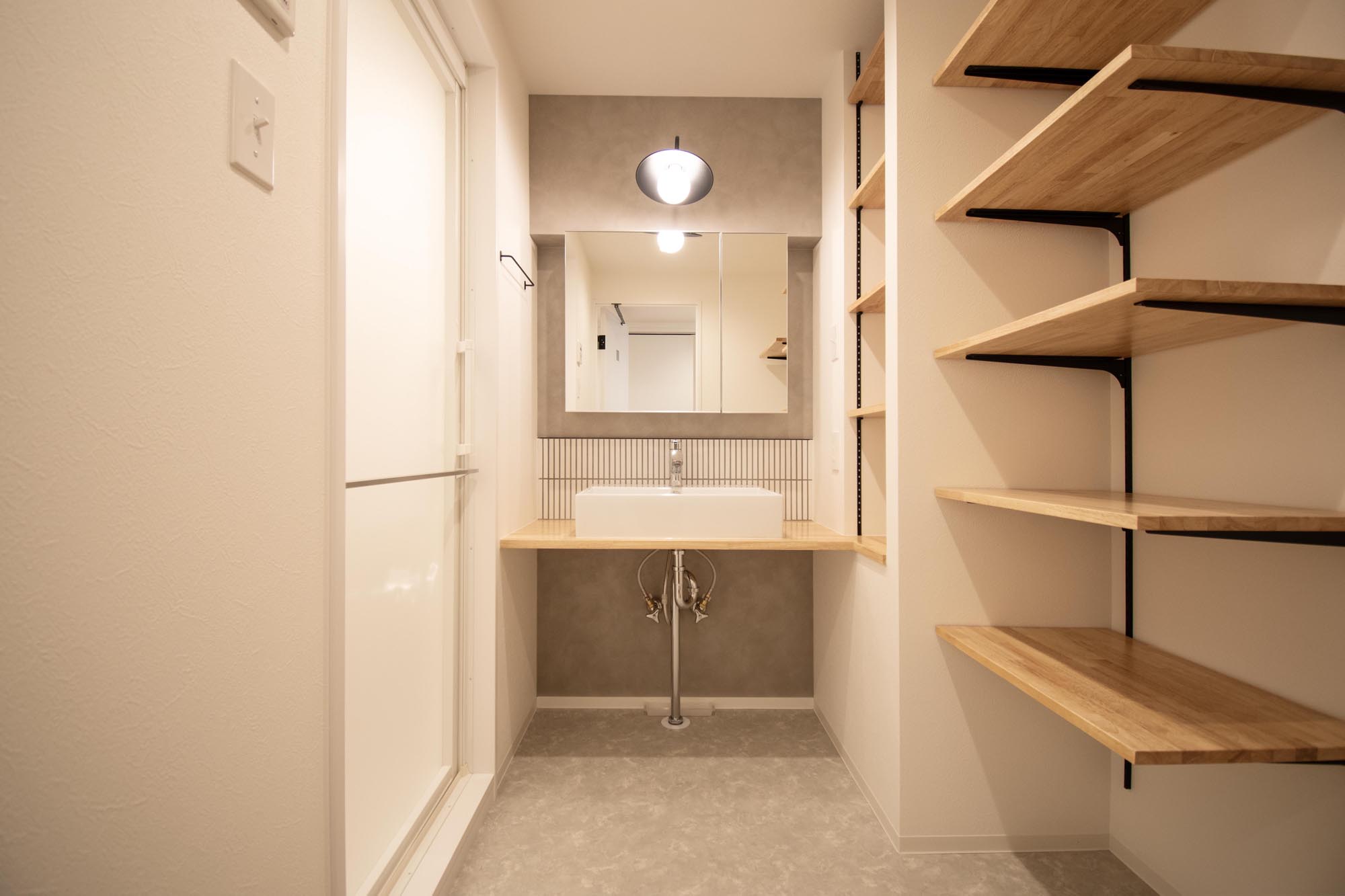 トーンを合わせたキッチンの腰壁で雰囲気UP。