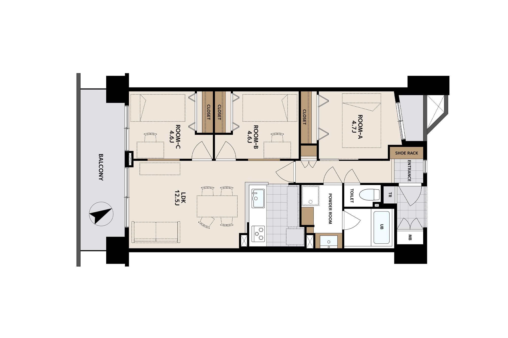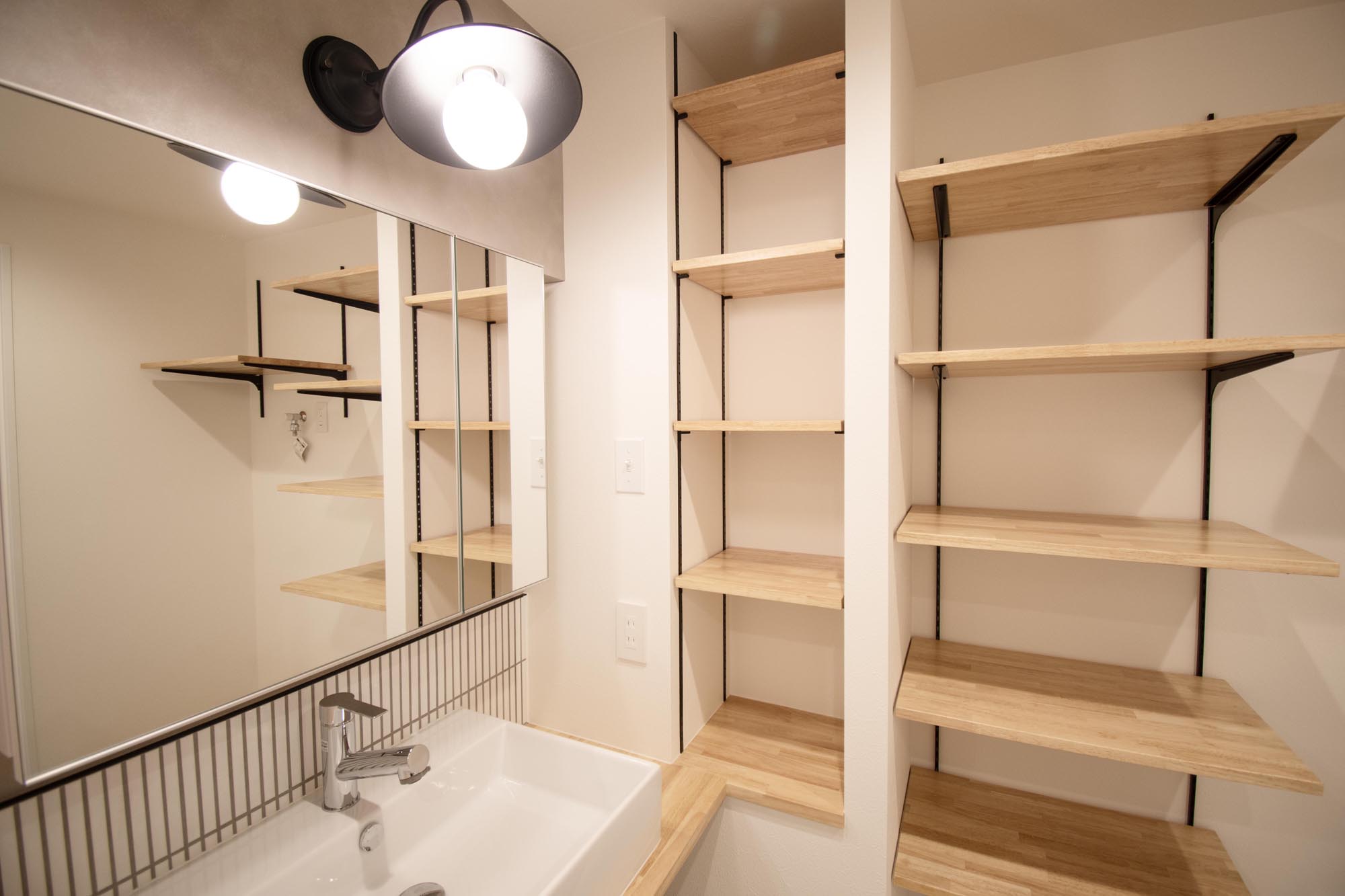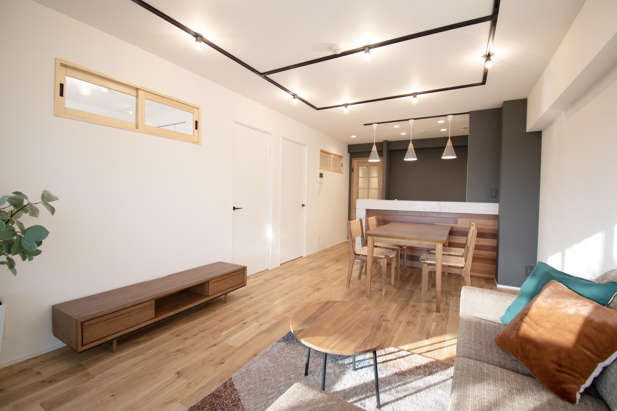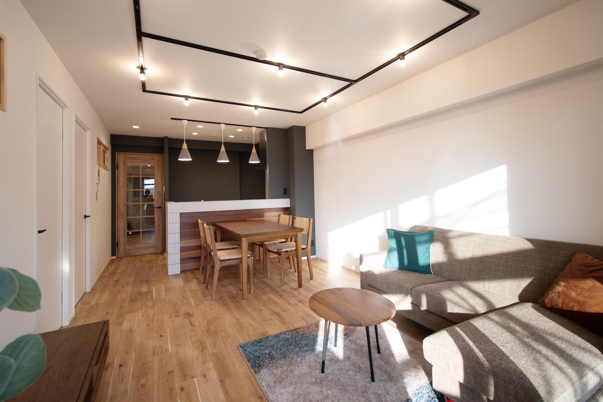 トーンを合わせたキッチンの腰壁で雰囲気UP。
