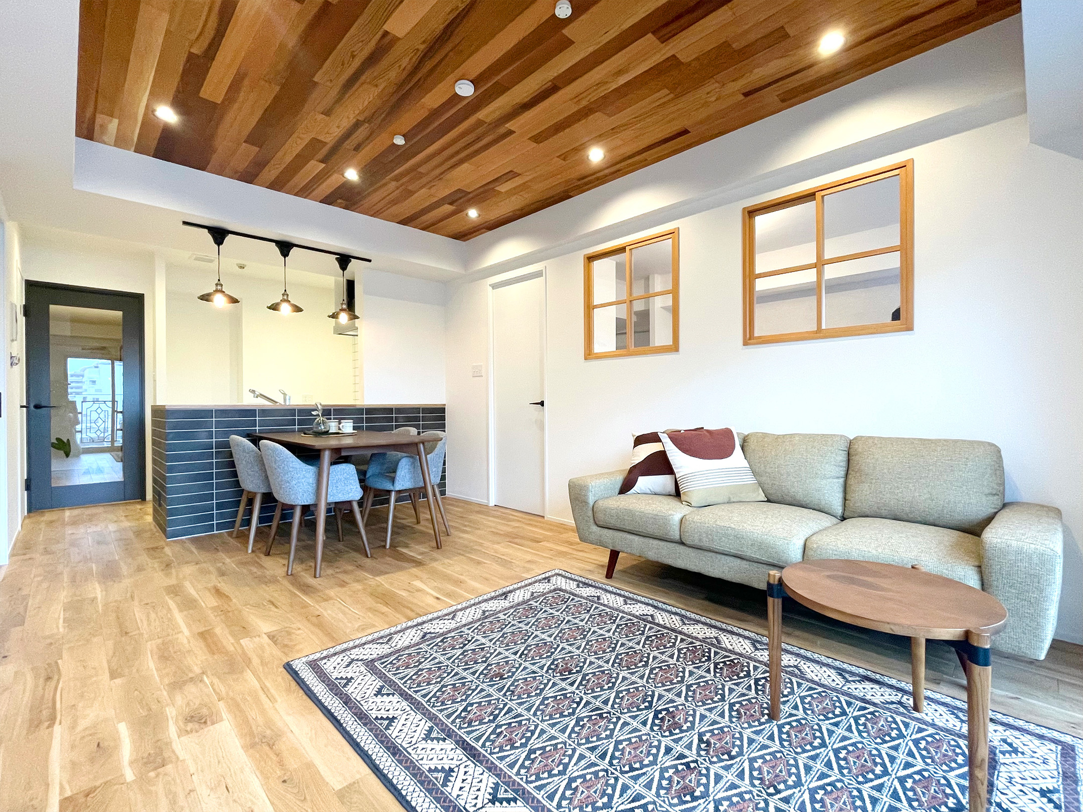 レッドシダーの天井が印象的な、大人の雰囲気のリノベーション。