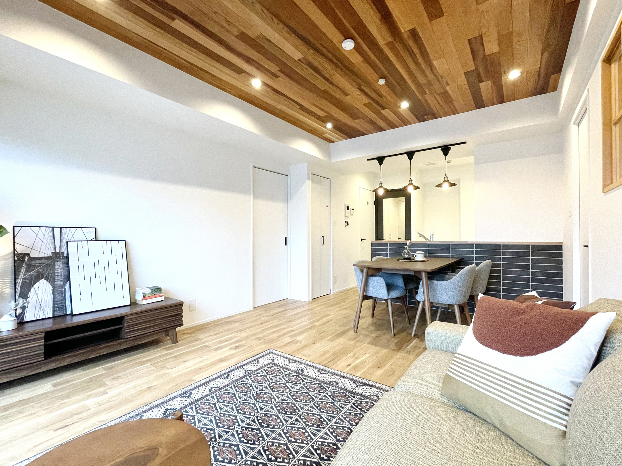 レッドシダーの天井が印象的な、大人の雰囲気のリノベーション。