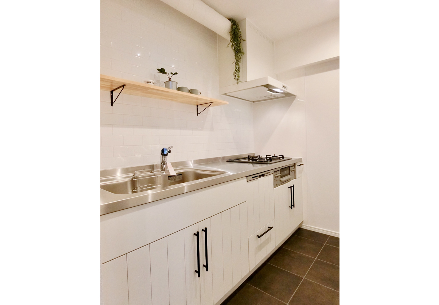 真っ白な独立キッチンは