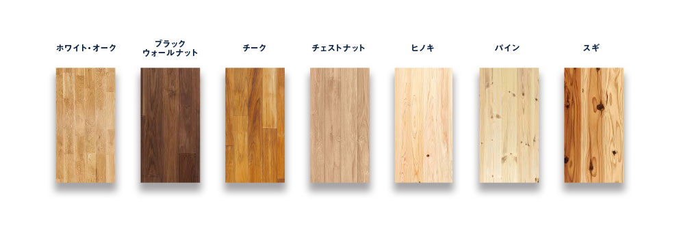 無垢材には、どんな木が使われているのでしょうか。代表的な素材をご紹介いたします。