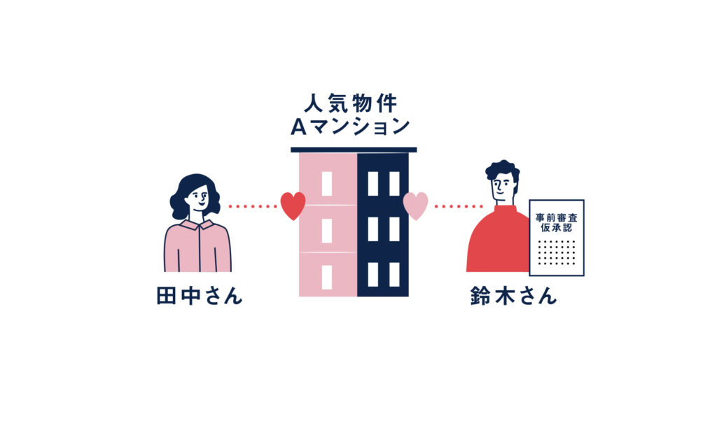○ 鈴木さん → ほぼ同価格の別の物件で事前審査仮承認が出ている。