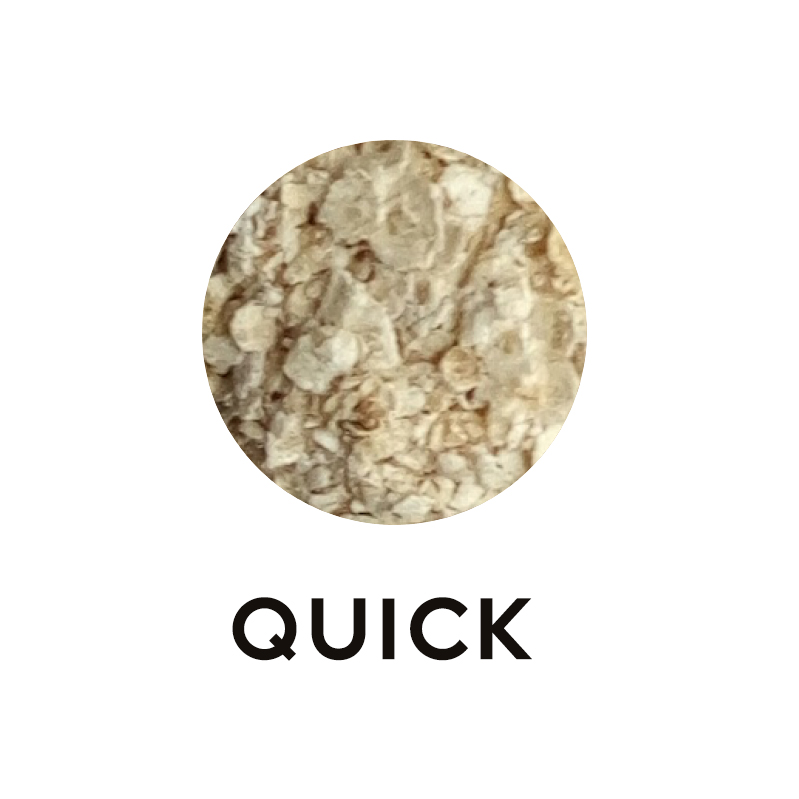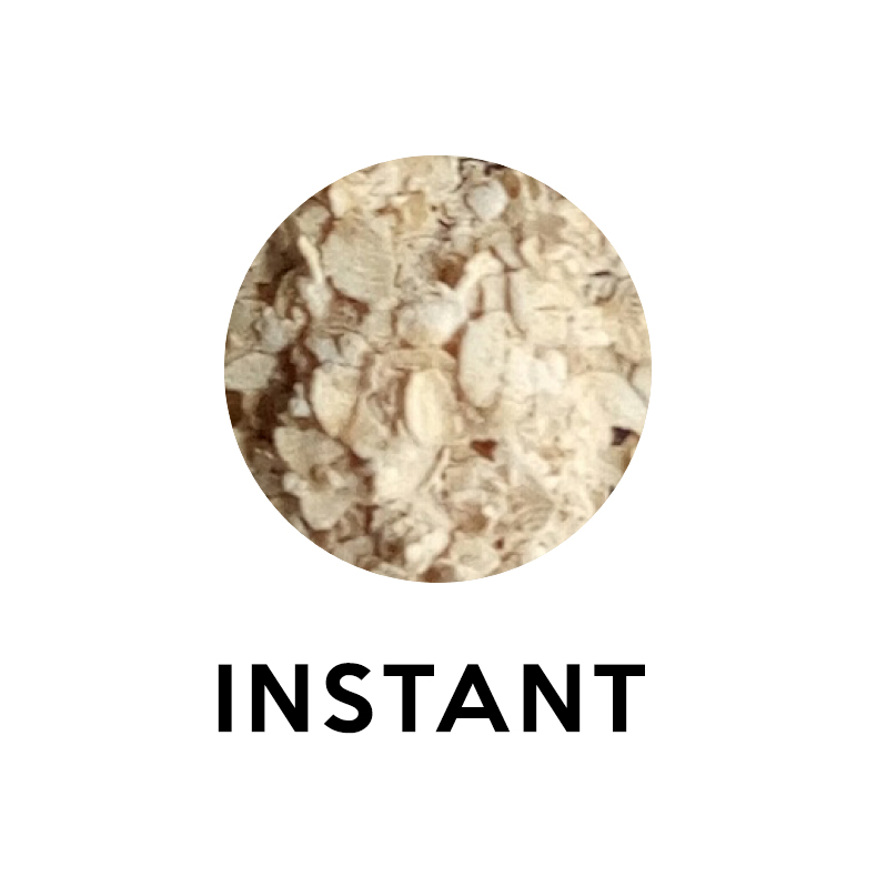 ロールドオーツを細かく砕き、短時間で調理できるようにしたもの。味はついていないので、好みで味付けする。