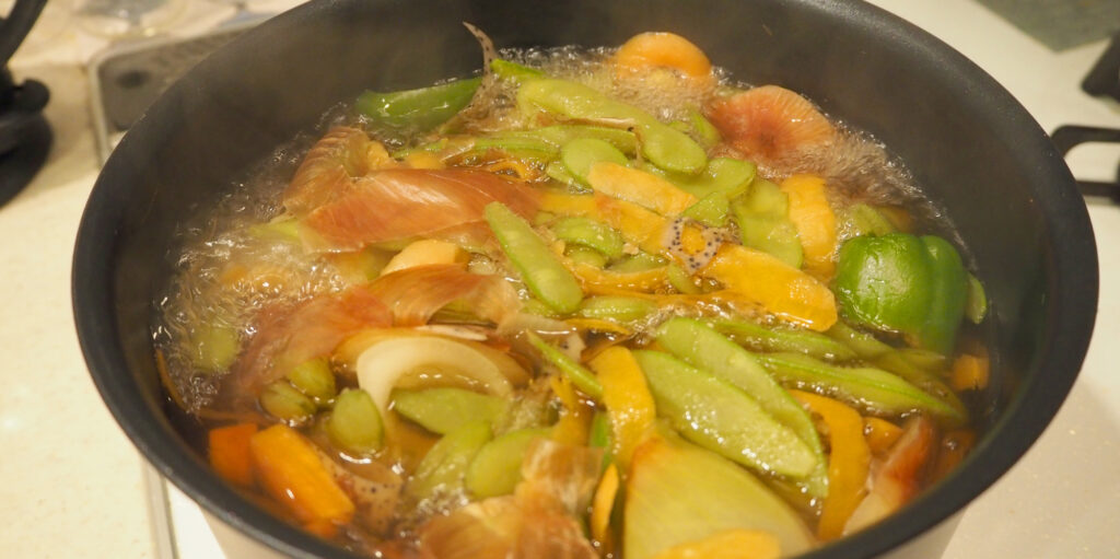 食事を作る際に出る野菜くずを、洗ってジップロックなどにまとめておきましょう。五種類以上溜まったら、ベジブロス作り開始!