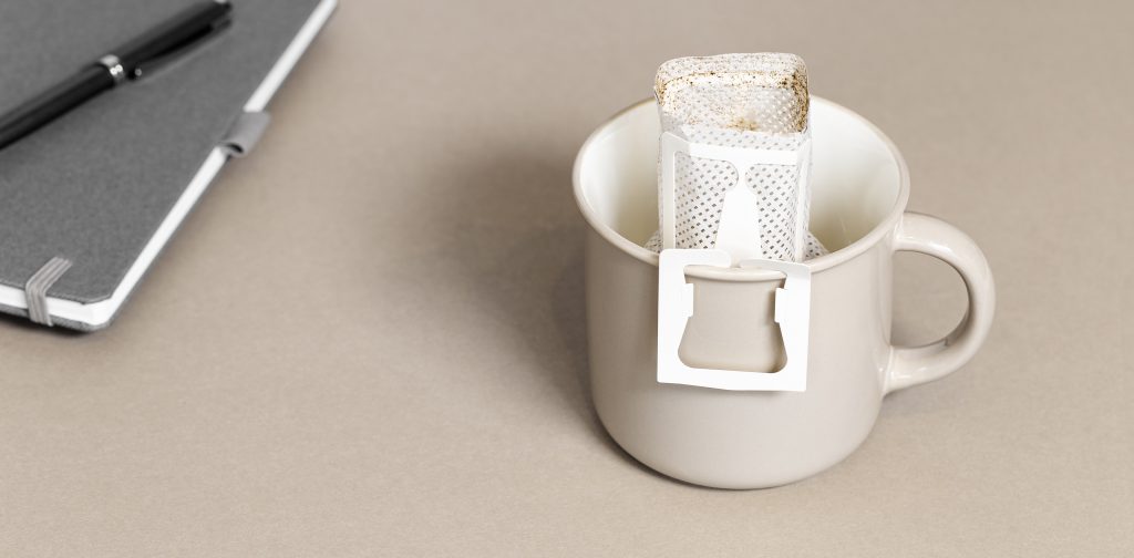 ドリップバッグの種類によっては、カップに引っ掛けると低い位置にセットされてしまうものもあります。これだと、お湯を注ぐとコーヒー粉全体がお湯の中に浸かりきる状態になってしまいますよね。