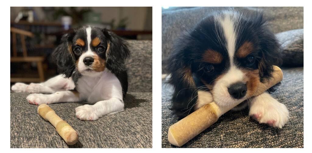 パピーの頃は特に初めてのおやつで丸呑みしてしまったりと不安なことも多いですが、アソボーンを使うとワンちゃんも飼い主も安心しておやつを楽しめます!
