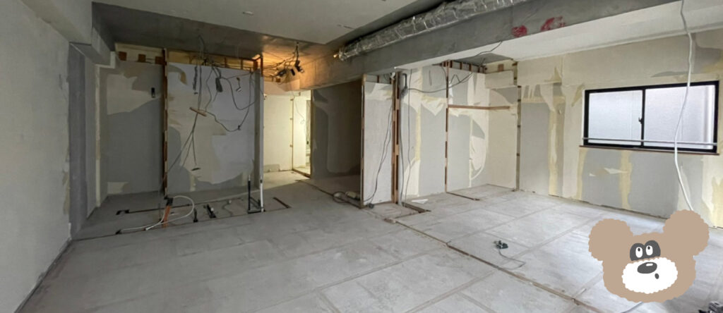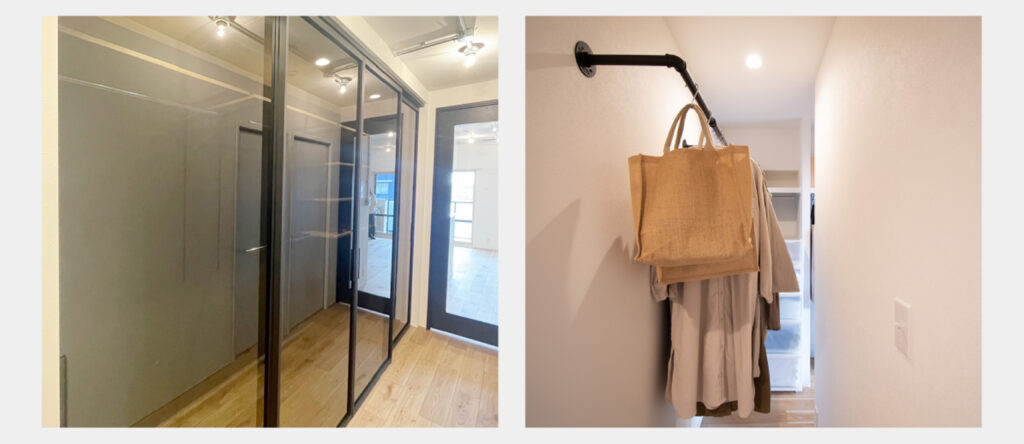 マンションリノベでよくある玄関に入って左右のスペースは靴を履いて行き来する場所(土間)です。